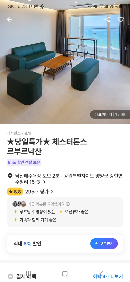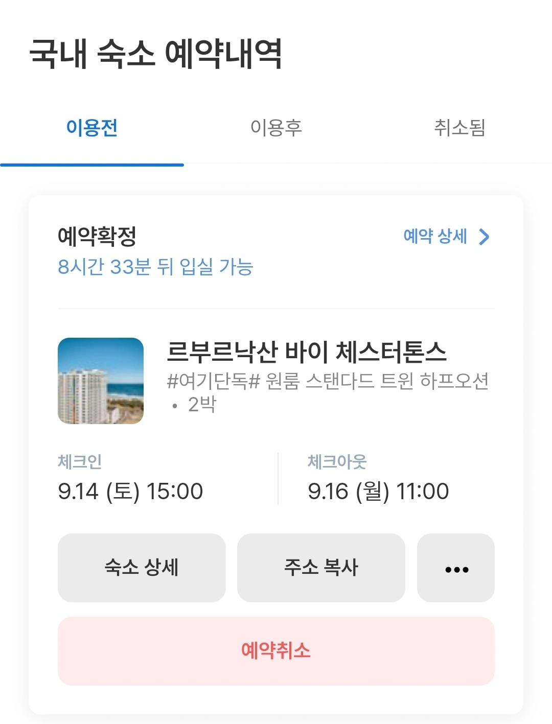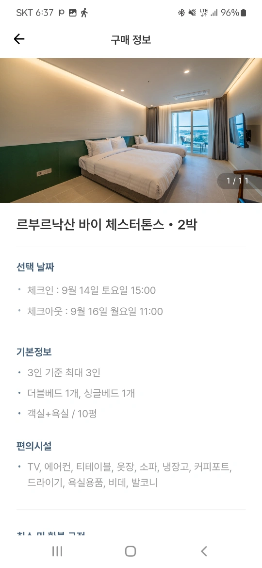 오늘부터 2박 이용가능한 슥소입니다 투 베드(더블,싱글)에 3인 이용 가능합니다 개인사정으로 싸게 양도해드립니다. 네고 가능합니다 가실분들만 문의주세요
