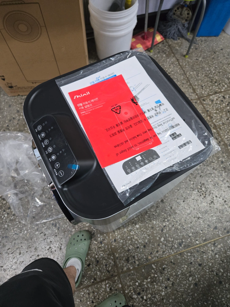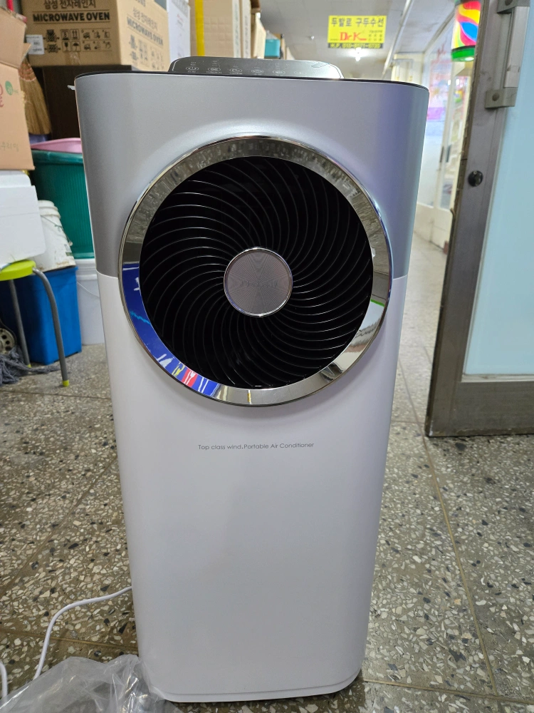 2022년식 신일 이동식 에어컨입니다 2년동안 한번도 사용 안했습니다. 박스만 뜯어봤어요. 안에 비닐이랑 전부 씌워져 있습니다.