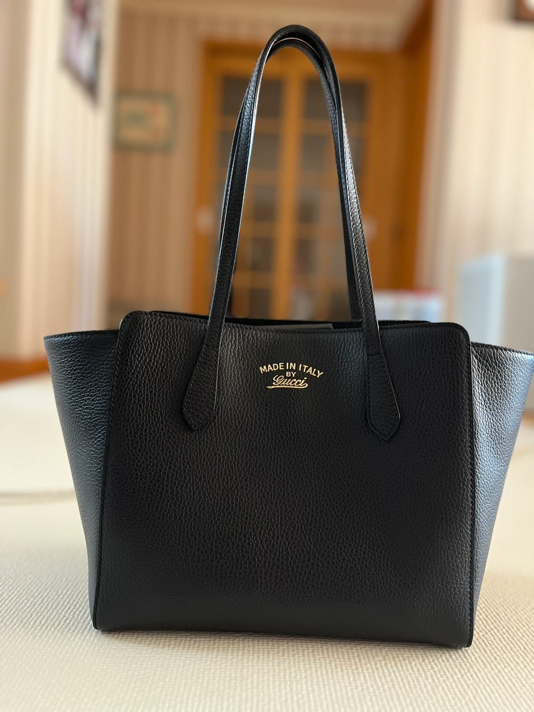 유럽여행 중에 구매한 구찌 스윙백 미니사이즈 입니다. 많이 들고다니지 않아 모서리 헤짐 없고 전반적으로 깨끗한 상태입니다.