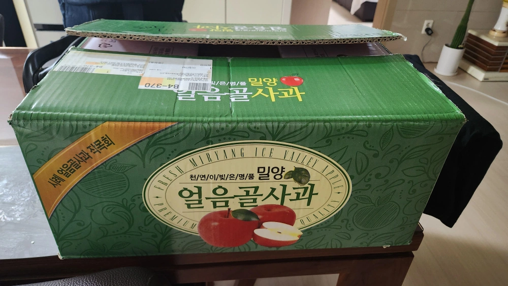 밀양 얼음골 사과 10kg 팝니다. 사진에서 보는 것 2단이고 크기는 작은편이라 선물용보다 직접드시는걸 추천드립니다. 맛은 먹어보지 않아 잘 모릅니다. 환불은 정중히 사양하겠습니다.