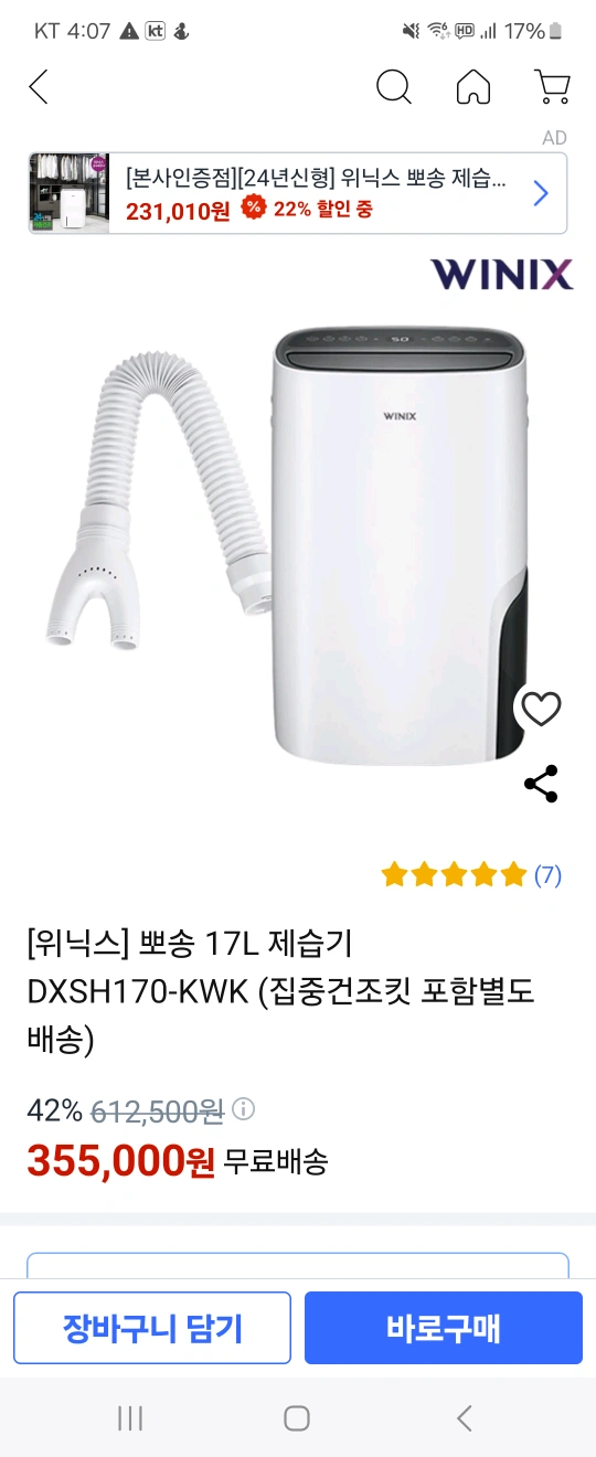 두해여름 잘사용했어요^^ 고장 전혀없고 외관도 깨끗해요 쿠팡에 똑같은 모델있어 사진올려요 (건조킷은 없어요) 쿨거래하시면 조금 깎아드릴수있어요~^^