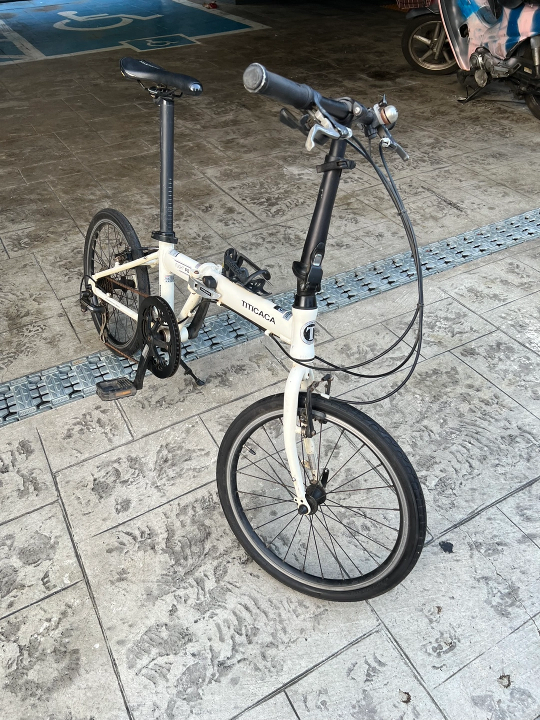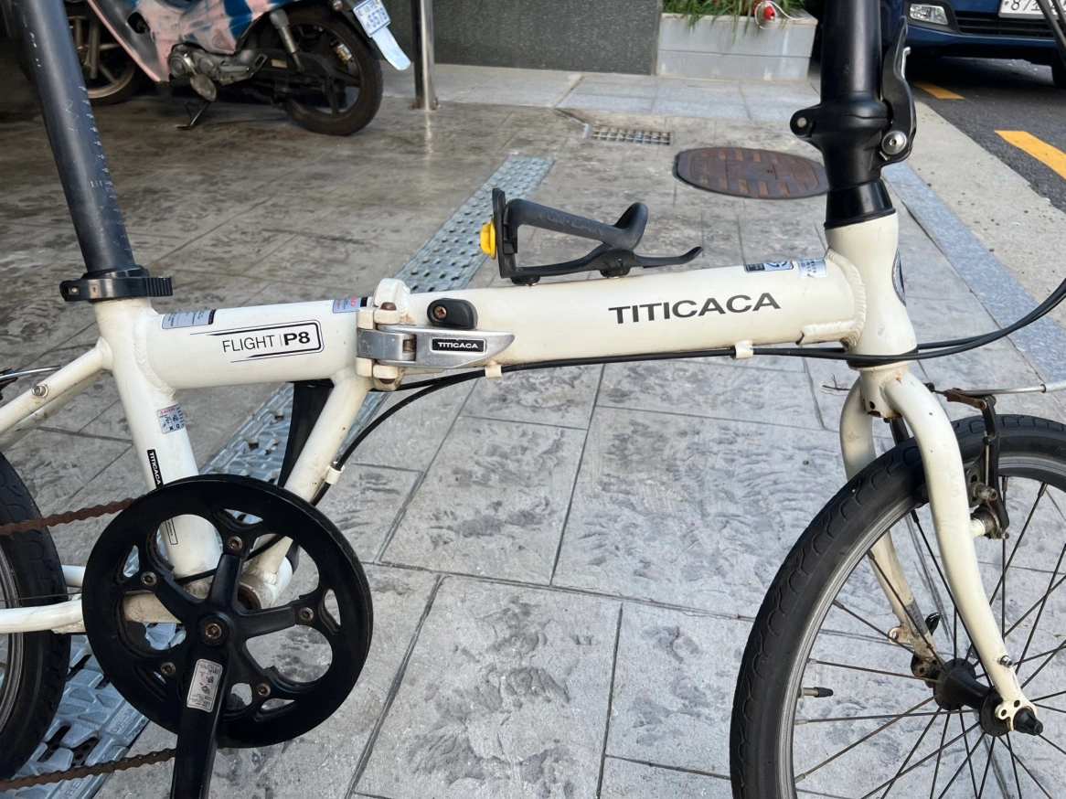 티티카카 TITICACA 플라이트 P8팝니다 와이프랑 같이 탈려고 했는데 거의 타질 않아 이제는 보내주려고 합니다 접이식이라 어디 갈때 싣고 내리기가 용이합니다 아마 미니벨로 분야에서 유명한 브랜드이고요 그래서 그런지 주행 성능이 매우 뛰어 납니다 와이프가 안장 높은거 싫어 해서 선택한건데 한창 탈때는 매우 만족하며 탔었습니다 연식은 좀 되었기때문에 사진 여러장 올렸으니 가만해주시고요 타이어 바람 짱짱이 채워놨으니 바로 가져다가 타시면 되 겠습니다 2015년 3월이 제조년월이라 세월감이 많이 있습니다 이 점 가만하고 보세요~~ 필요하신분 연락주세요~~
