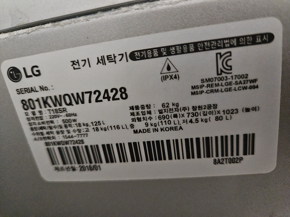 LG 트롬 듀얼 인버터 세탁기/건조기 17/9kg150,000원