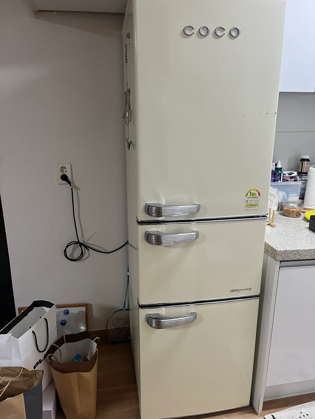 안녕하세요 코코 소형 냉장고 판매합니다! - 모델명: CKB28CT - 사이즈: 가로 55.4 * 깊이 68,3 * 높이 188.4 - 용량: 275L - 방식: 간냉식 크림 색상의 coco 냉장고입니다! 3단으로 이루어져있고 가운데 칸은 온도 설정해서 냉장 or 김치냉장 or 냉동실 선택해서 사용할 수 있어요! 사진상 보이는 스크래치 등 사용감은 있지만 기능에는 전혀 문제 없어요~ 이사를 가서 저렴하게 판매합니다! 22일 일요일 오전에 거래 희망하고 용달 불러서 직접 가져가셔야해요ㅠ 내부는 깨끗하게 청소해서 준비해놓을게요!