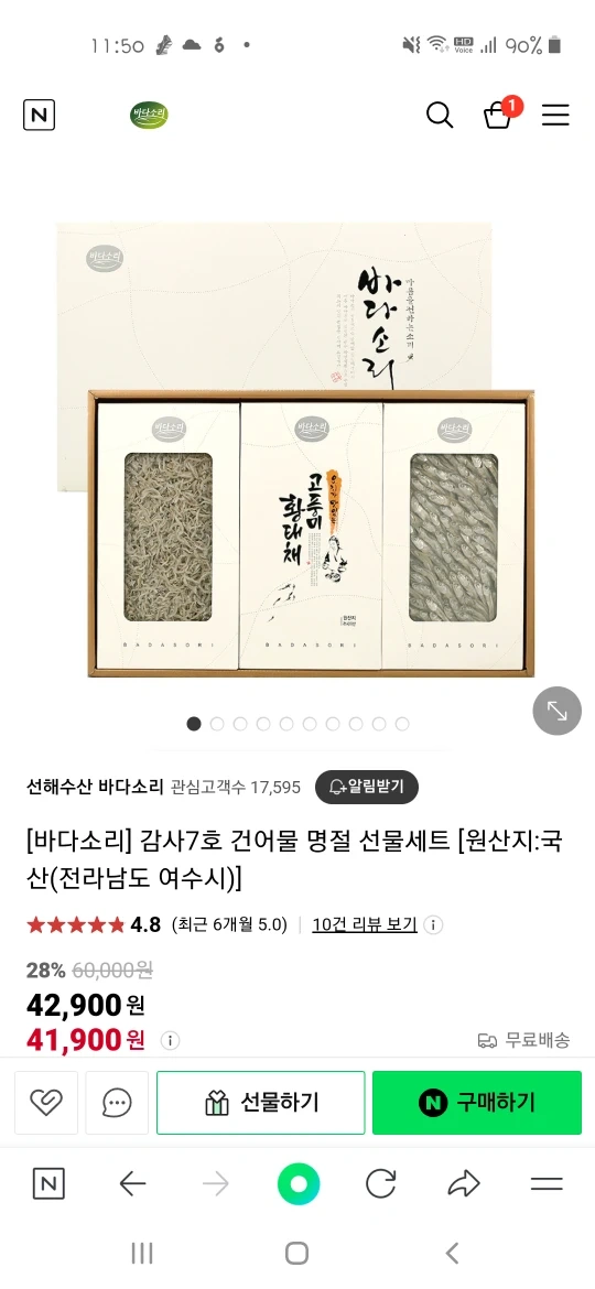 선물받은 멸치선물세트인데 필요없어서 올립니다 인터넷판매사진도 올려놨어요 보시고 필요하신분연락주세요