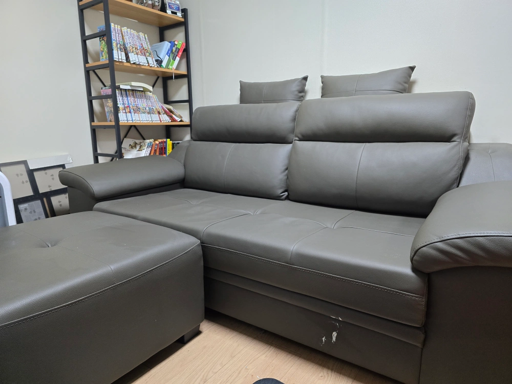 5번 미만사용. 거이 옷 던져놓는곳으로 사용했던 쇼파 입니다 보니깐 텍도 그대로 있네요~ 상태 좋아요 엘레베이터 있는 2층 빌라인데 계단으로 옮기셔야해요 성인 남자 2명이시면 어렵지 않습니다. 가지러 오셔야 해요