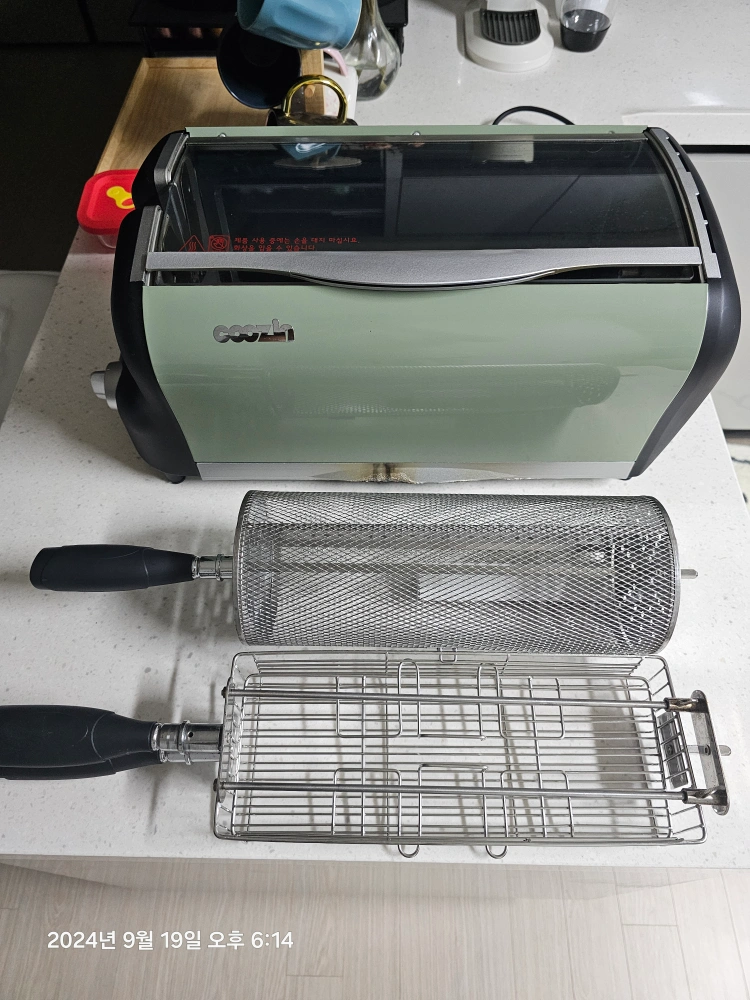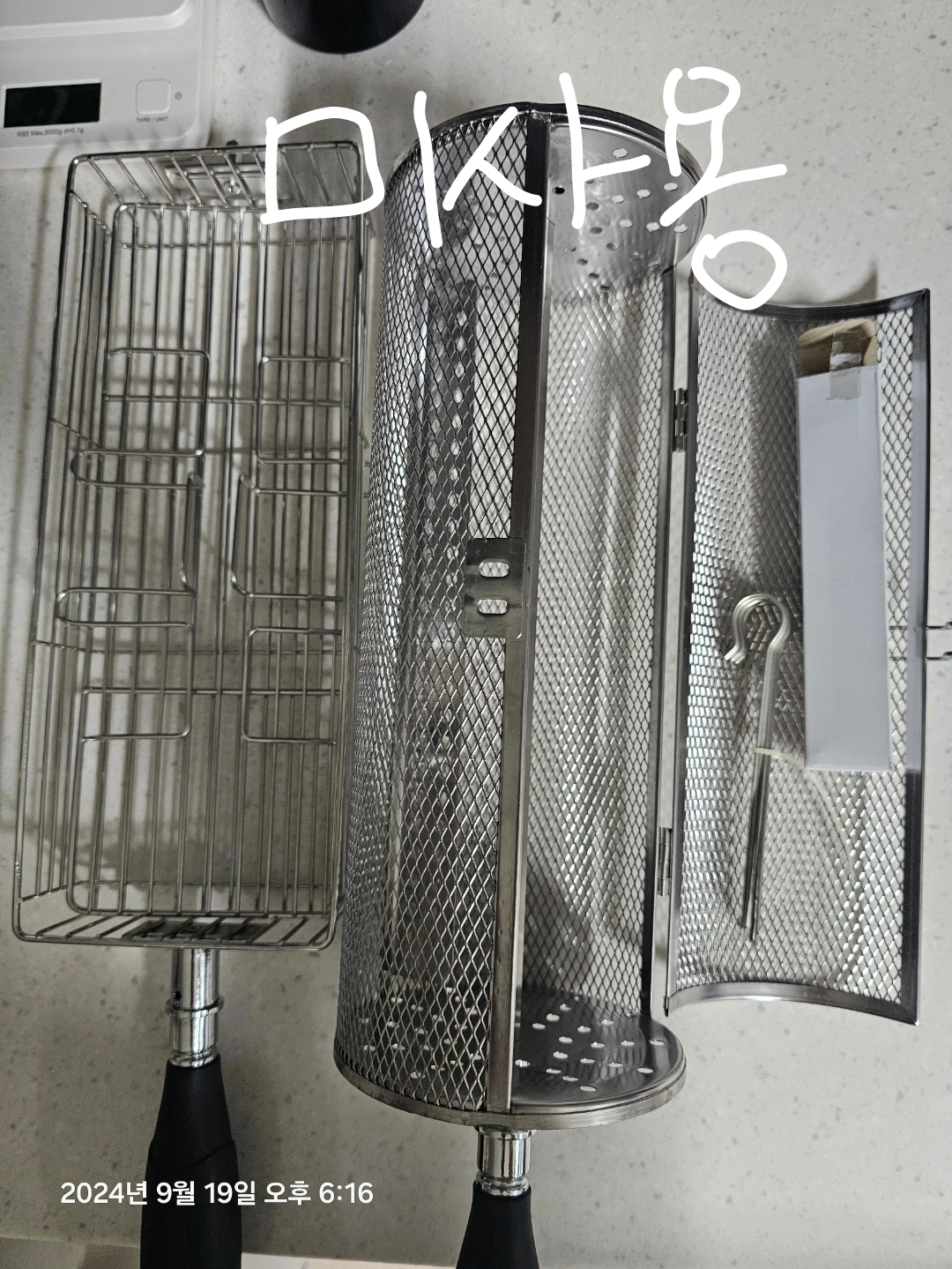 상품정보 http://ssg.li/2NFWbE 3년전 혼수때 사은품으로 받았다가 시험삼아 바베큐 1번 해보고 창고에 넣어놨던 제품입니다 통구이봉에 삼겹살 꼬치만 꽂아서 사용했구요 비쥬얼과 맛은 기가 막히나 설거지가 귀찮아서 방치했습니다 기름받이의 기름이 굳어서 녹이려고 토치질했다가 겉표면이 살짝 상했습니다(사진참조) 현재 전기 잘들어오고 원형통구이기랑 사각통구이기는 미사용입니다 캠핑가거나 야외에서 자주 사용하실분은 추천드립니다