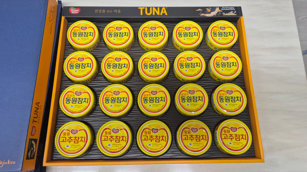 동원참치 S20호. 라이트스탠다드 90g 15개, 고추참치90g5개 1박스 상품입니다. 총 2박스있습니다. 박스당 27000원, 두박스 다 구매하시는분께 5만원에 드립니다.