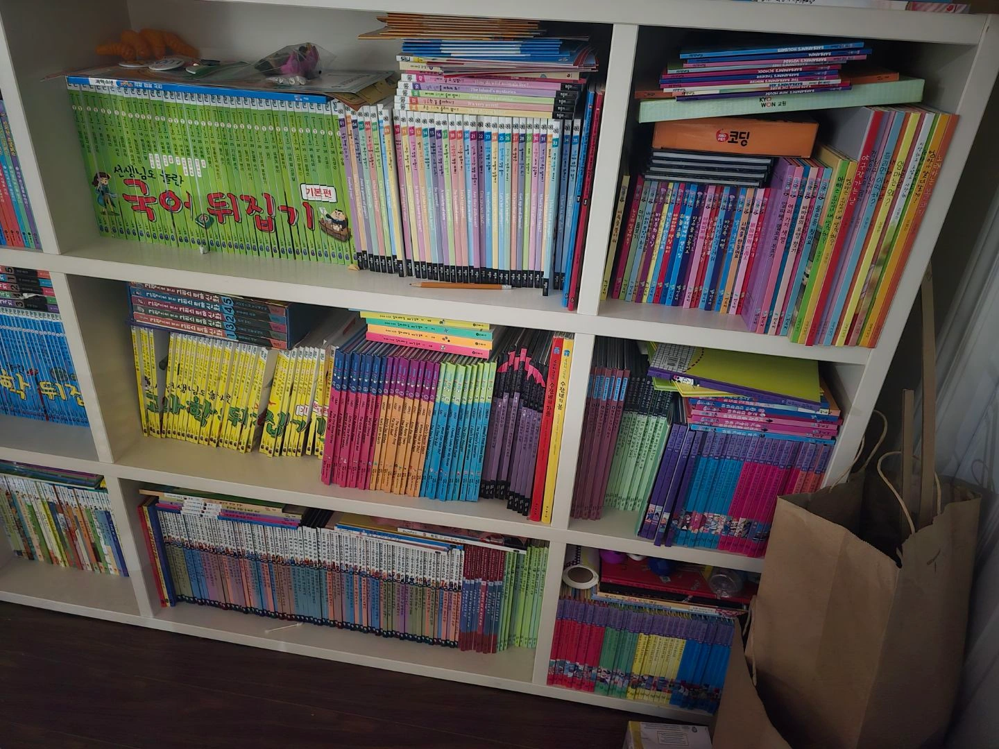 모두 한국에서 새책으로 구매햐것이고 상태는 망가진것 없이 전권 모두 있음. 마법의 시간여행, 신기한 스쿨버스, 국어뒤집기, 그레이트북스, 성우출판사 뒤집기 시리즈들, 설민석 한국사, 세계사, 사이언싱 톡톡, 도요세 호기심, 라라비안 나이트, 미로탐험, 그리스로마신화, 마법천자문 등등 인기전집들 보유하고있음. 한샘 책장도 판매함. 관심있는 분은 647 567 6421로 문자연락