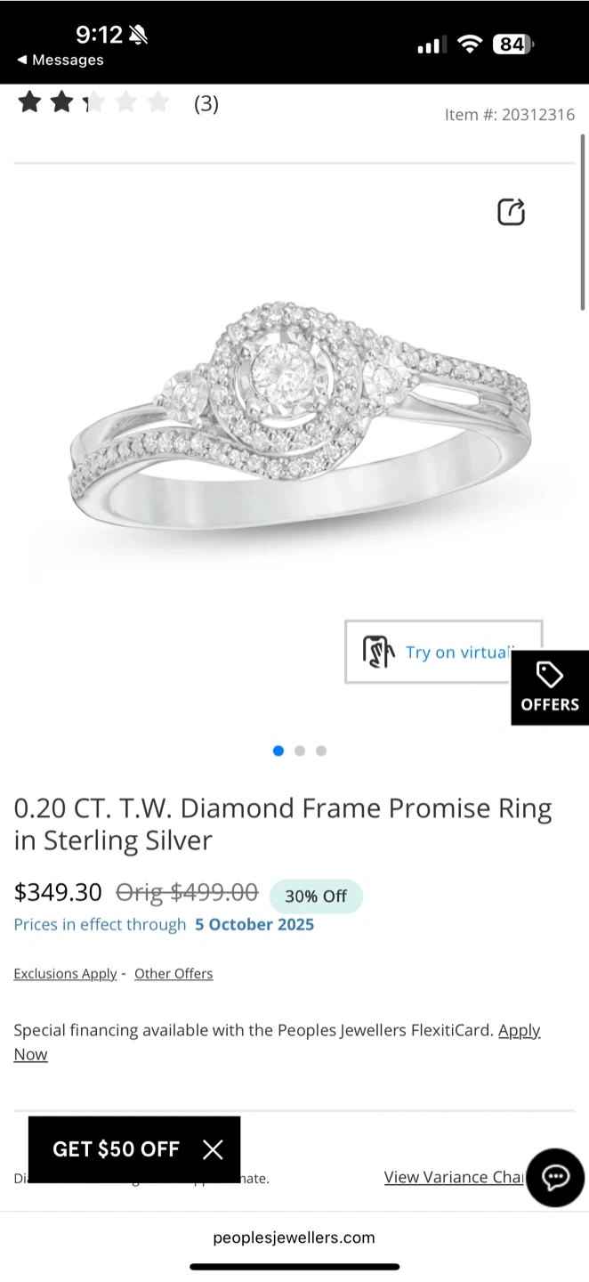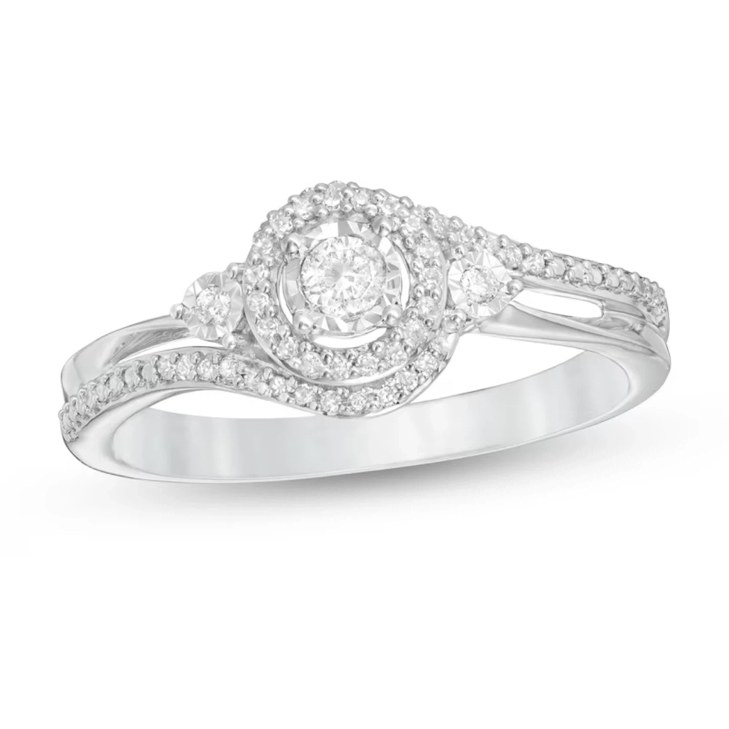 Selling a beautiful 0.20 CT. T.W. Diamond Frame Promise Ring in Sterling Silver! It's a stunning piece that originally retailed for $499.30. It’s a size 6.25