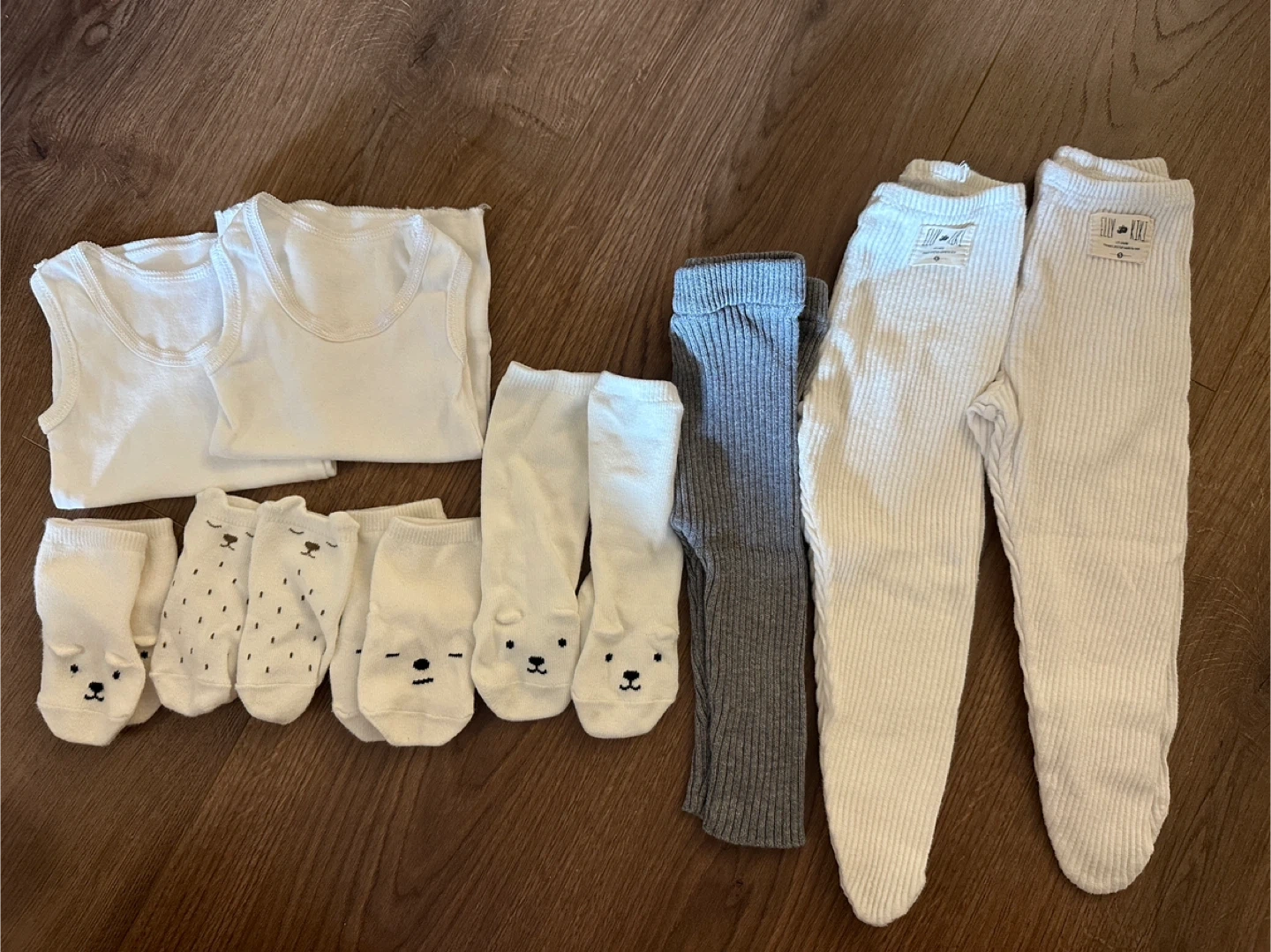 Selling a sweet little bundle of baby clothes! Included are socks with adorable bear faces, comfy leggings, and soft undershirts. Perfect for keeping your little one cozy and cute