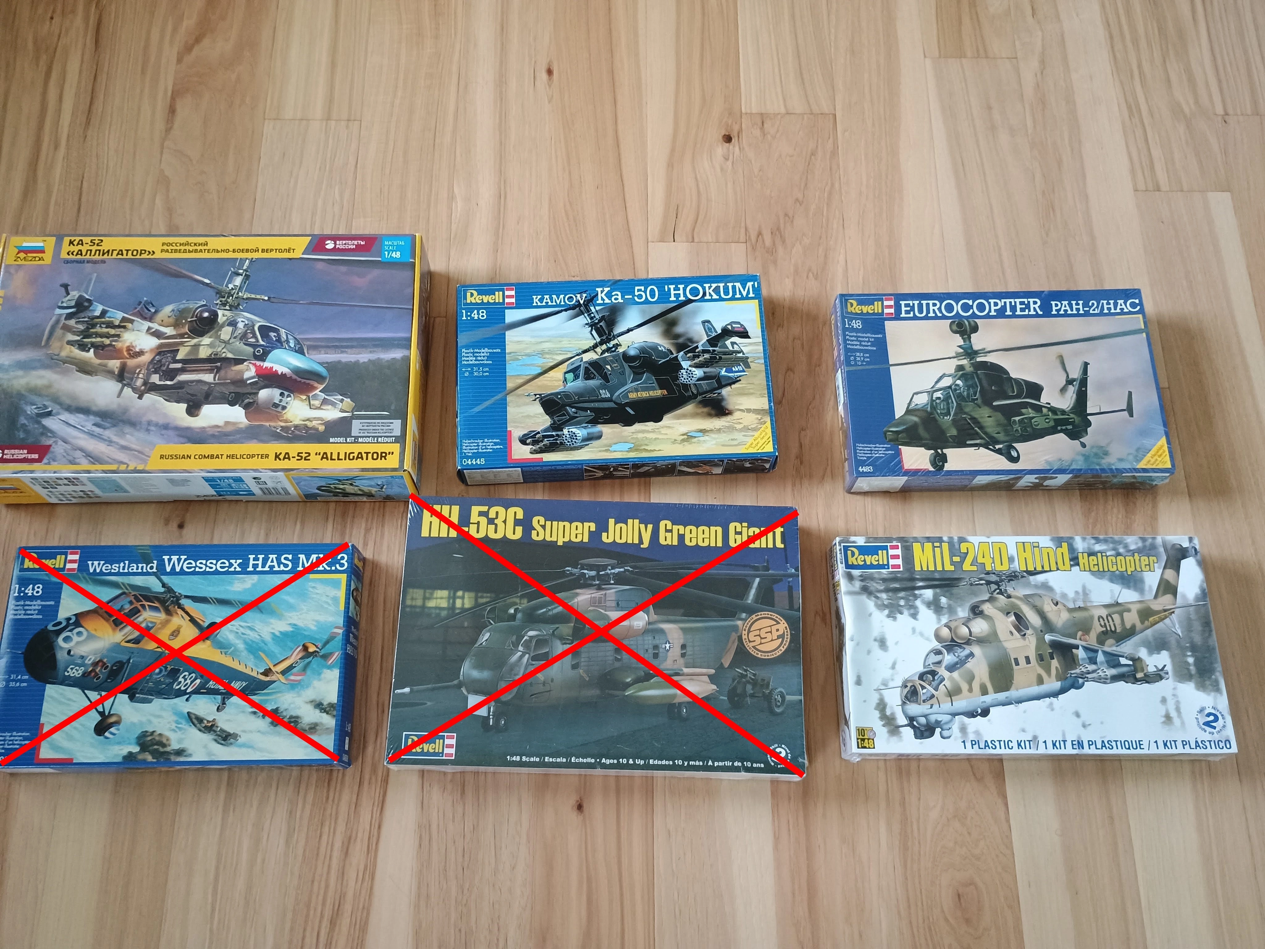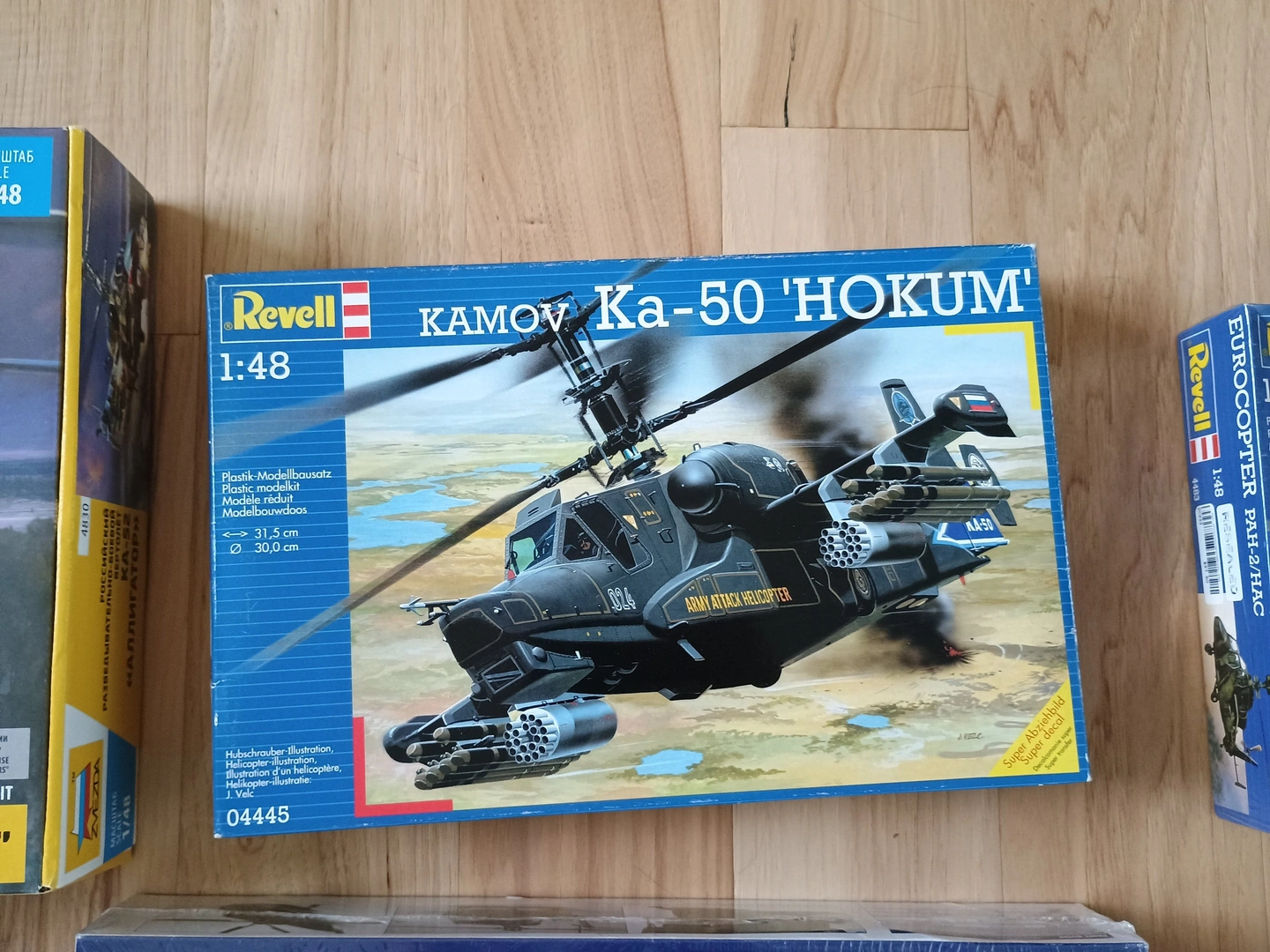 All kits are in excellent condition (some kits are still in plastic wrap). All parts are sealed. All parts present, including decals. No parts missing. Nothing wrong with any kit. If the ad is up then it's available. Will ignore such questions unless specific to an item in the list below. 1:48 Zvezda Ka-52 "Alligator" - $100 1:48 Revell MiL-24D Hind Helicopter - $50 1:48 Revell Kamov Ka-50 "Hokum" - $70 1:48 Revell Eurocopter PAH-2/HAC - $30