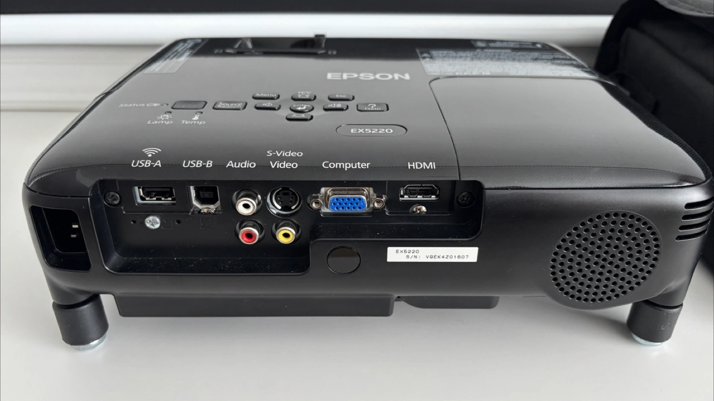 Epson EX5220 H551A Wireless XGA 3LCD Projector Black 3000 Lumens. Good for presentations or home theatre. HDMI and other inputs. Comes with remote control. 100 inch 16:9 screen for indoor and outdoor. With mounting bracket.