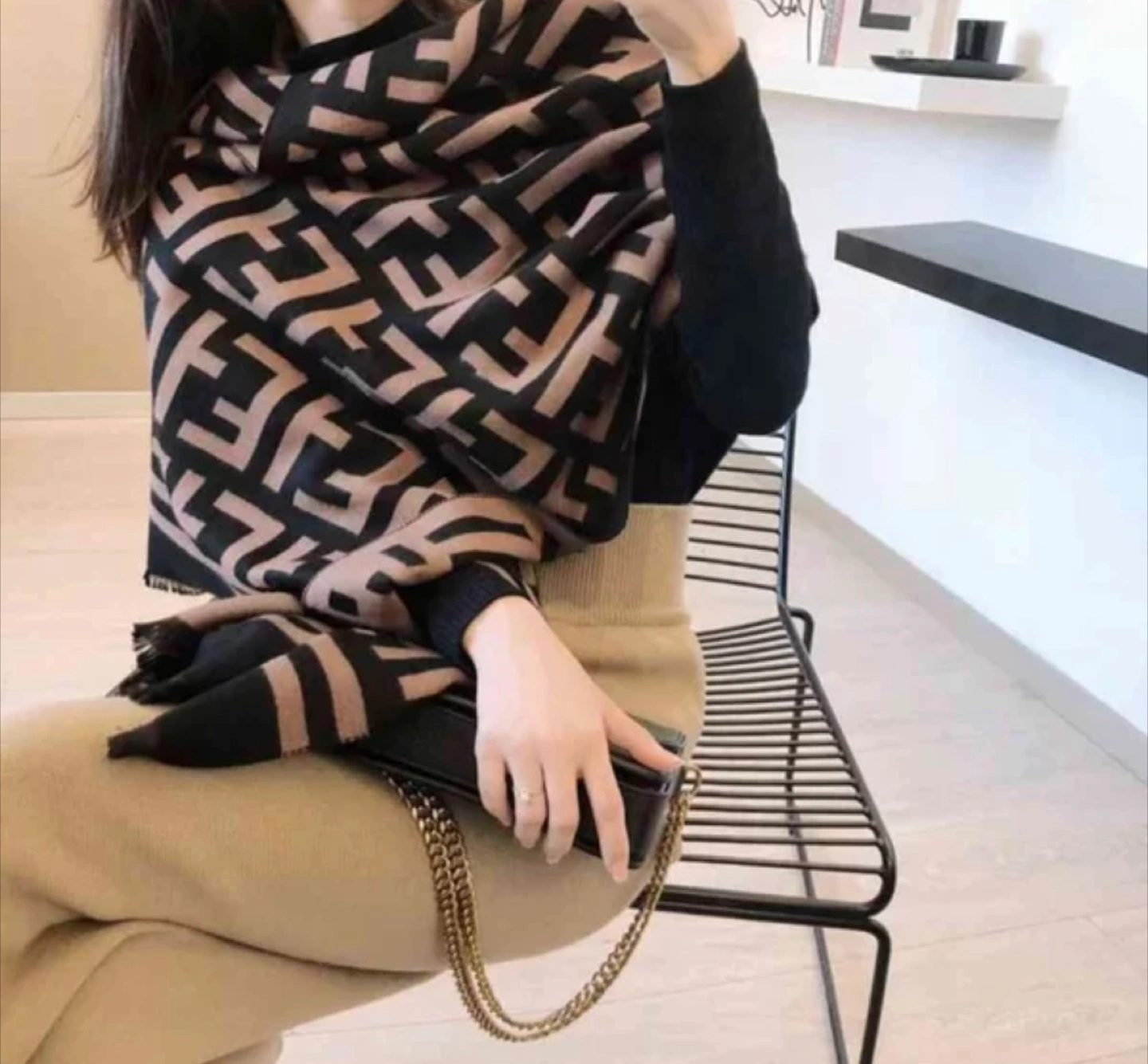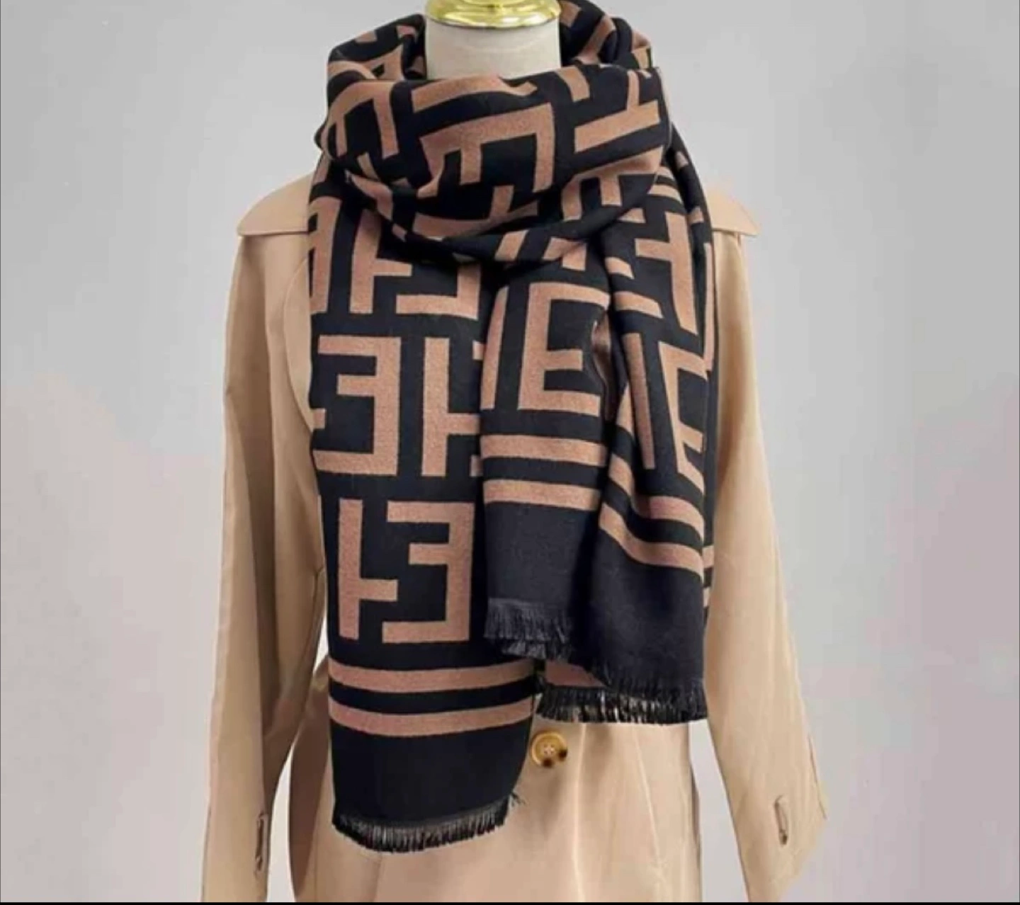 112A stylish Fendi logo scarf in a classic brown and black colourway! The iconic Fendi logo pattern makes it a fashionable accessory for any outfit. It's in great condition and ready to add a touch of luxury to your wardrobe