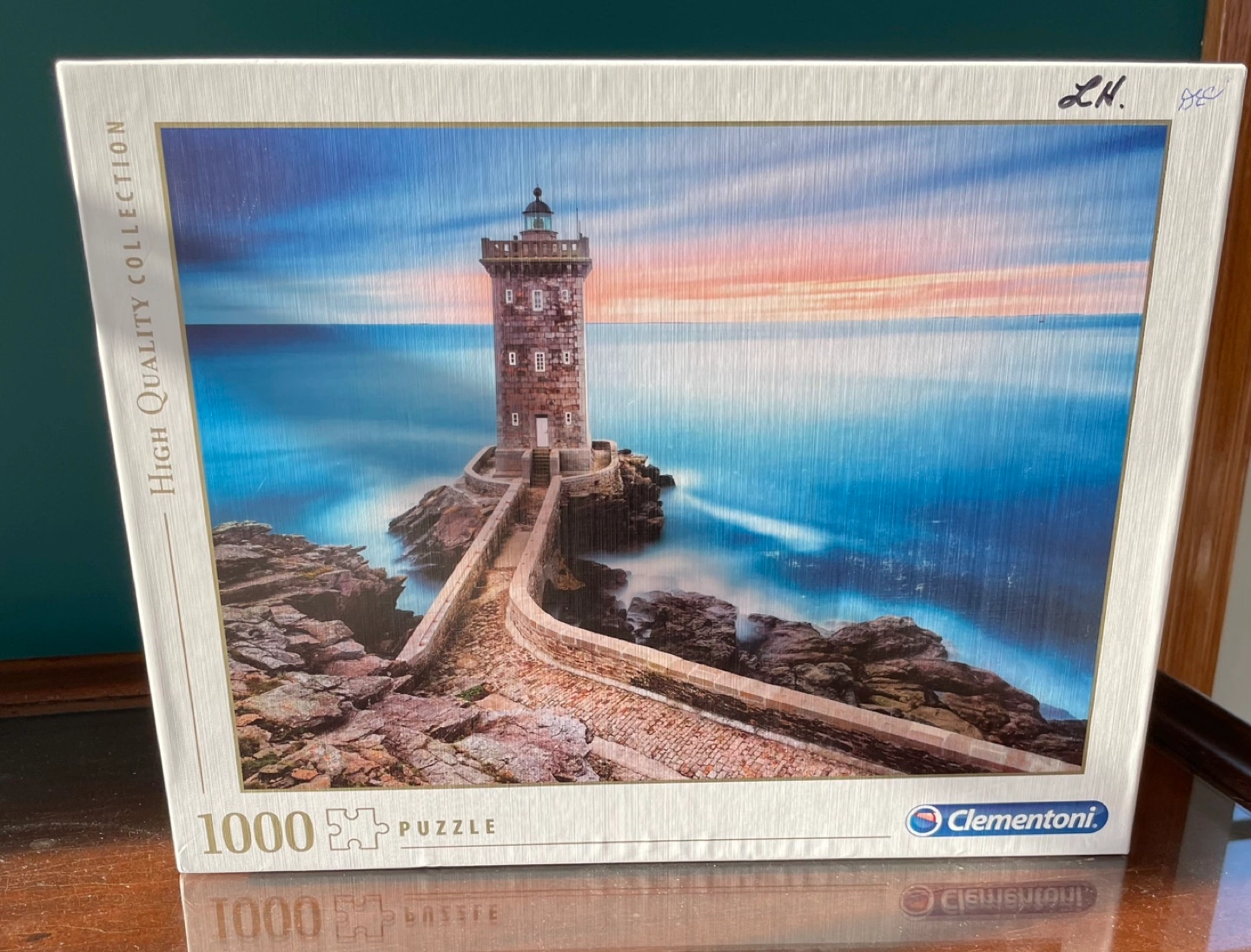 High-quality 1000-piece jigsaw puzzle. Features a scenic coastal lighthouse. Brand new, still in box.