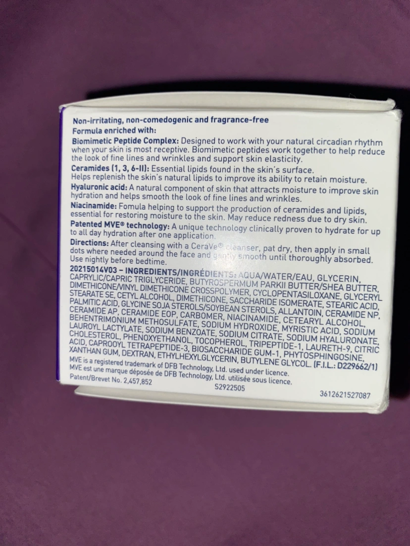 Brand new, still in box. Never used. Ideal for all skin types, it includes three essential ceramides, hyaluronic acid and niacinamide to help restore the skin barrier, retain hydration and help sooth the skin while you sleep. This non-greasy, intensely moisturizing Skin Renewing Night Cream is designed to help improve the appearance of fine lines and wrinkles, and patented time-release MVE Delivery Technology for all-night hydration —so you can wake up with a feeling of looking rested and rejuvenated.