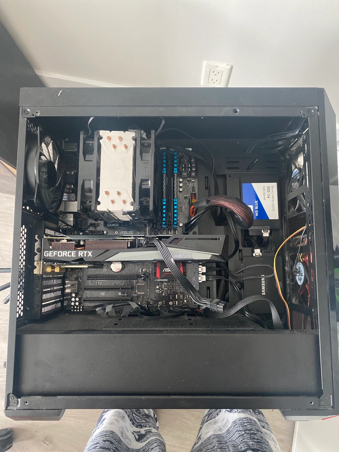 Selling my PC because I don’t game anymore. The part are quite old but the graphics card I bought in Feb (can be bought separately) i5 3.8GHz 4970k Nvidia 3060ti Asus H97-PRO GAMER motherboard 4x4 DDR3 RAM 2x500gb SSD 2x 1000gb HDD Corsair 750M PSU