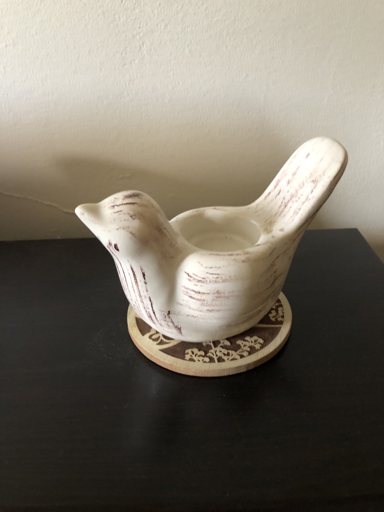 From Pier 1 Imports. Ceramic, no defects. Shaped like a dove.