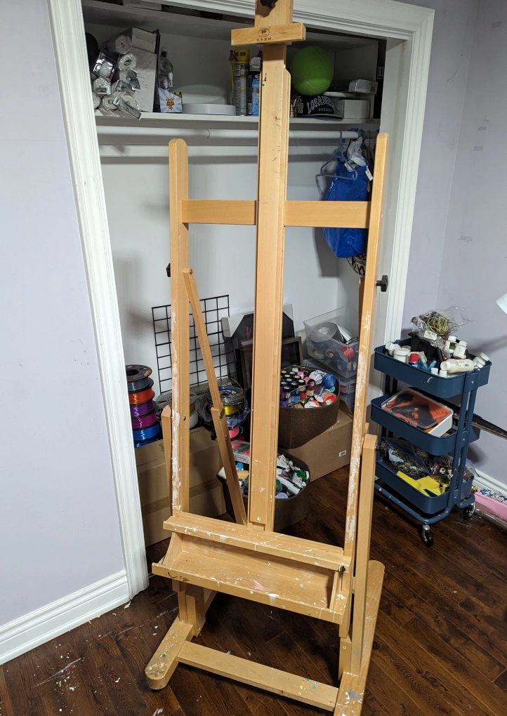 A studio easel, bought for $180 on Amazon and used for two years. Looking for $60. Thank you!