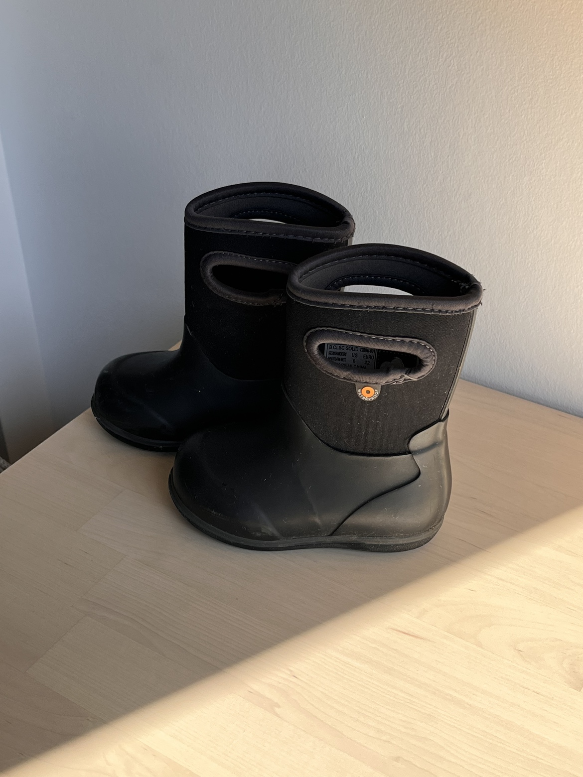 Size 6, black Bogs for toddlers, great for fall/winter/puddles etc. Selling because my girl has grown out of them.