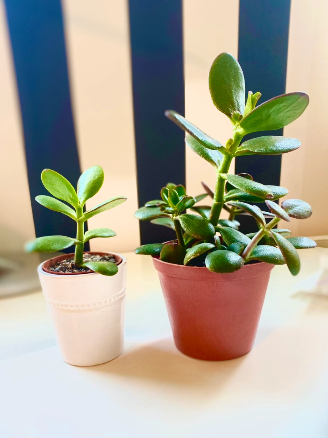 Two jade plants. 10 for both . Healthy and full. Bigger one is in nursery pot , smaller in aplastic insert with drainage that goes into the ceramic ( ceramic is chipped at one side ) Easy to care for . Love ☀️ Pick up Bay and Dundas area .