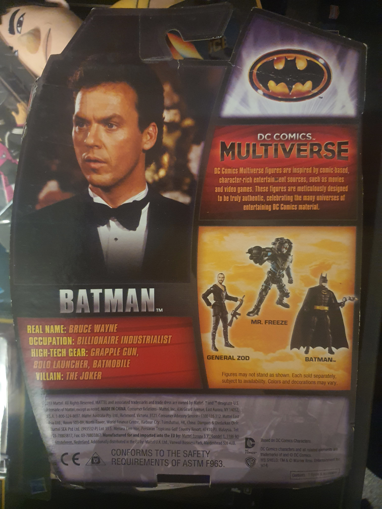 This is for the chase figure of Michael Keaton's portrayal of Batman figure of him unmasked. figure is originally sealed in minor shelf wear packaging and nothing seriously worth noting as noticeable recognised