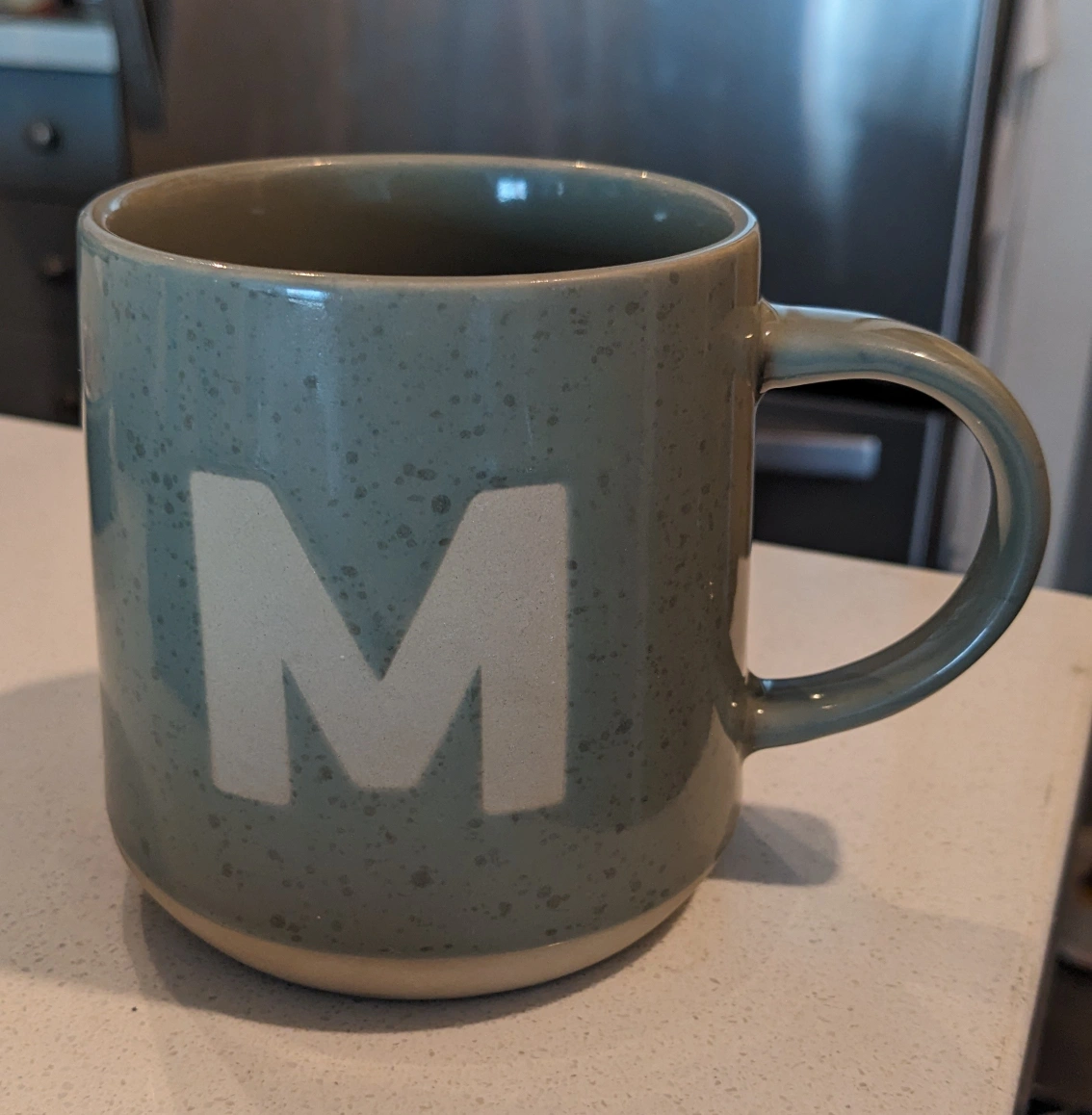 Like New Condition monogrammed mug - perfect for anyone whose name starts with an M 😂. Pick-up only at Bathurst and Lakeshore W area - I'm usually around on Wednesdays to Saturdays.