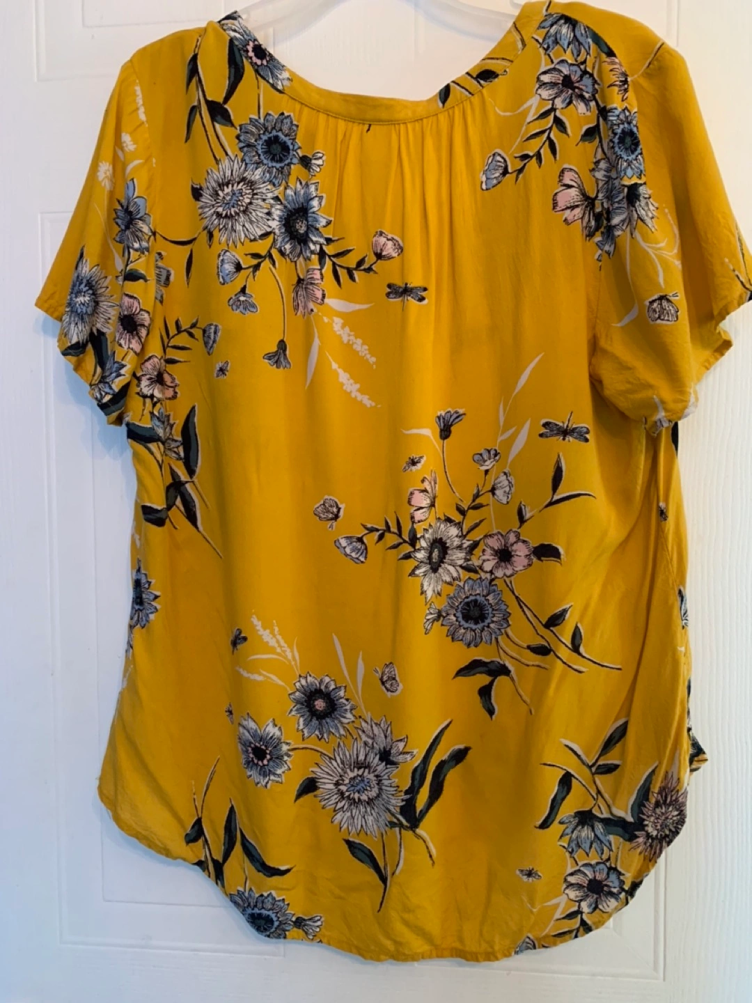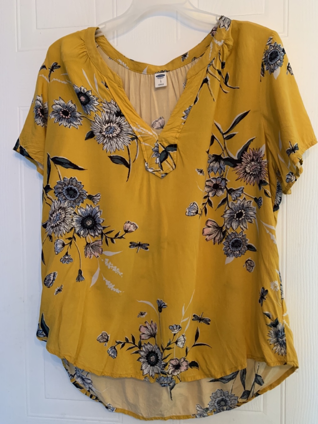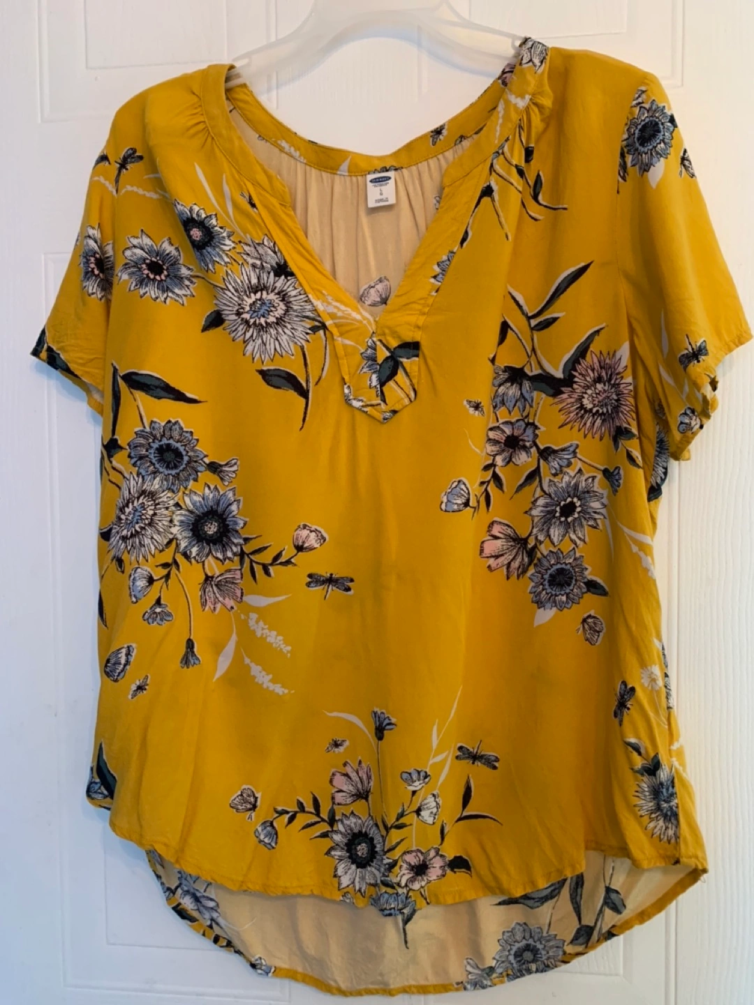 Hi there, I’m selling a gently used lovely large sized yellow old navy blouse. Final sale, non refundable. Cash only, Msg me if interested. PICK UP ONLY: 1980 St. Clair Ave West, The Stockyards Village Mall. The intersection is Weston & St. Clair Ave West. Check out my other listings. 🙂