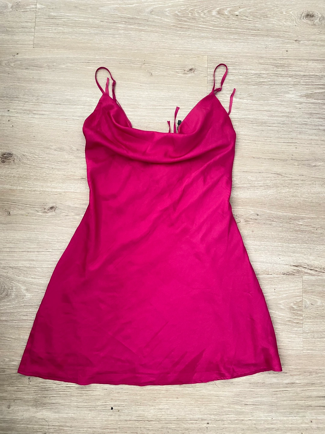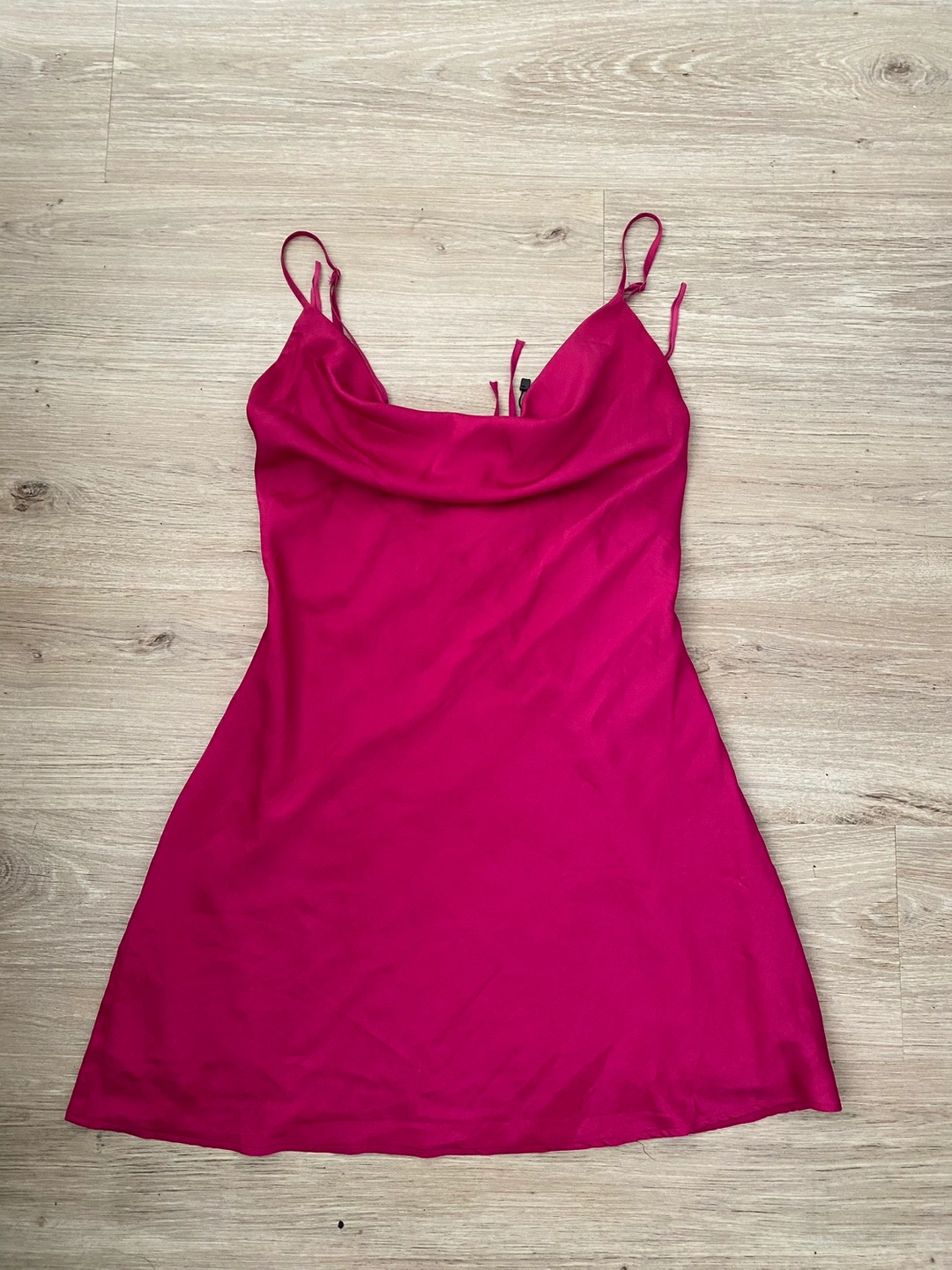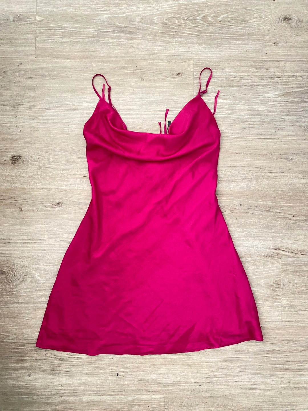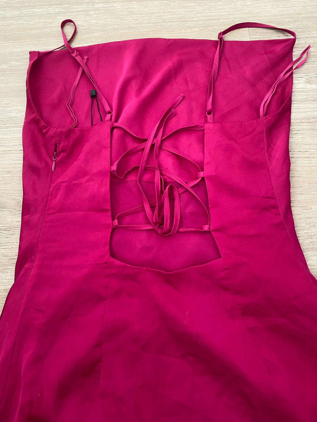 Satin slip dress, adjustable with tie in the back and comes with side zipper