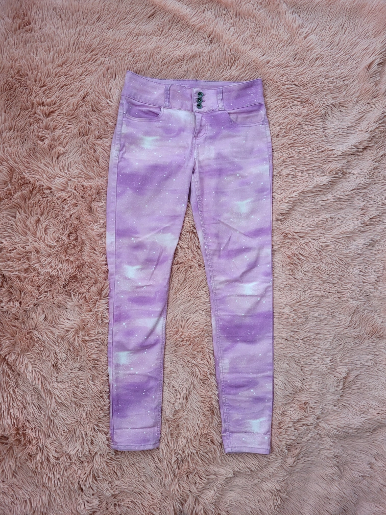 -excellent condition, only used a handful of times. -from Hot Topic -funky pattern of acid wash/tie-dye/twinkles -skinny slim fit -lighting was weird with the photography but they are pink