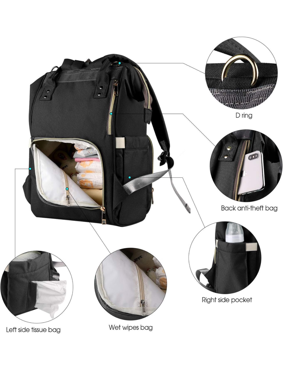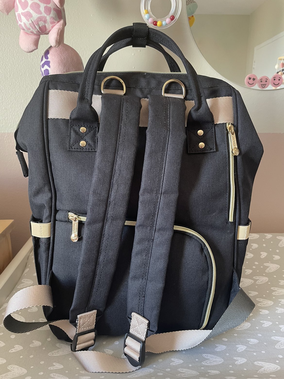 Compact diaper backpack that combines style, versatility and convenience. A fashionable backpack that can be carried by both moms and dads. This diaper backpack has all the must-have features of a classic diaper bag including 1 big compartment and 10 pockets for the ultimate organization, easy-grab handles and a mommy pocket for your belongings. *PICK UP ONLY at Yonge & Davisville / Mount Pleasant area*