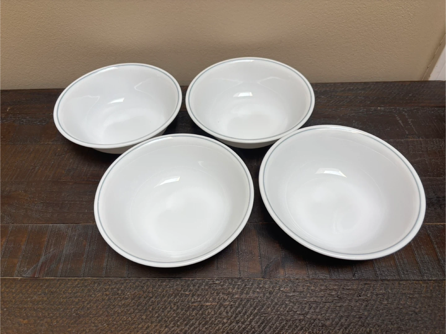 Selling a set of 4 Corelle cereal bowls. They are in great condition. Each bowl is approximately 6 inches in diameter and is microwaveable Pickup in North York near Don Mills & Finch