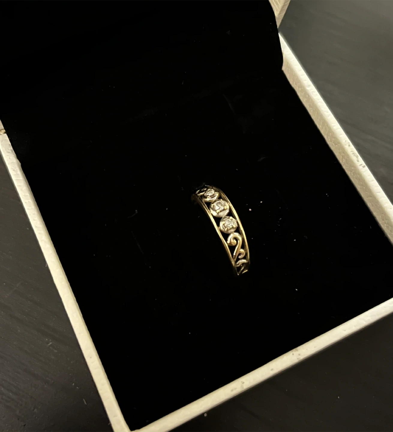 Selling a beautiful 10K gold ring featuring a delicate design and sparkling diamonds. It comes in a box, ready to be worn and enjoyed! $220 OBO