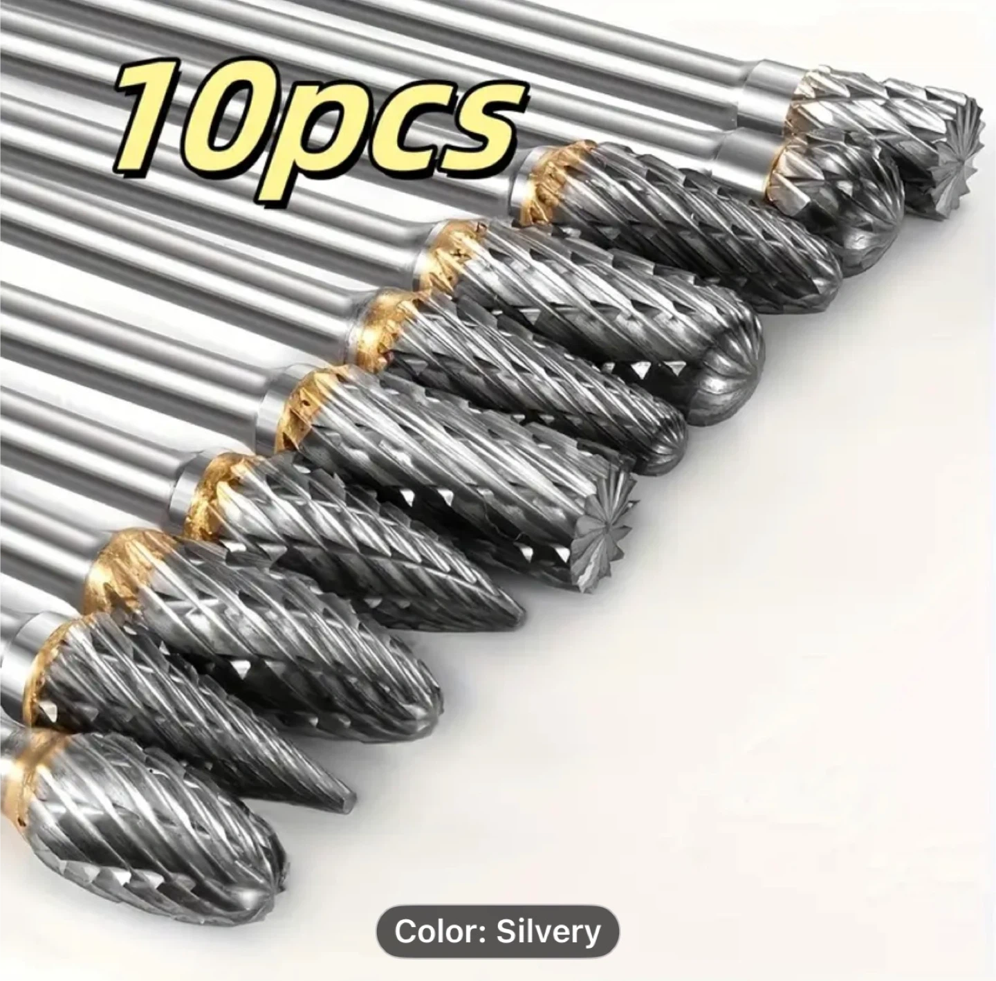 10pcs Carbide Rotary Files Set | Tungsten Steel Grinding Kit | for Polishing, Carving & Sanding Metal, Wood, Plastic & Jade | Multi-Shaped Engraving Bits for Precision Work, Rotary Tools for Engraving, Rotary Tool Accessories, Precision Engraving, Durable Construction, Highperformance Bits, Metalworking Tools, DIY Enthusiasts