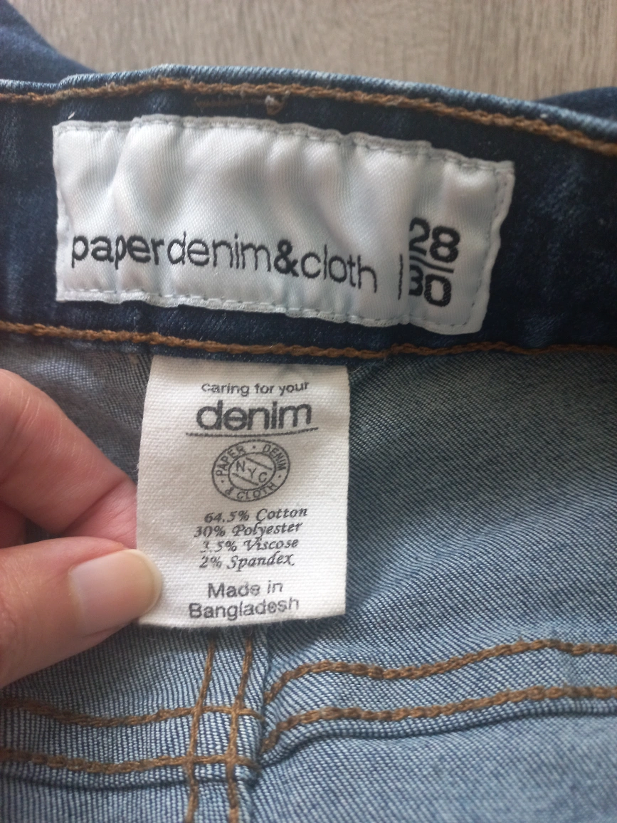 A pair of jeans in good condition. As I know the retail price was like $25-$30 Total length is 37 inch and leg length is 28 inch 64.5% cotton, 30% polyester, 3.5% viscose, 2% Spandex Pick up at 85 E Liberty St or OCAD U Cash or E-transfer only
