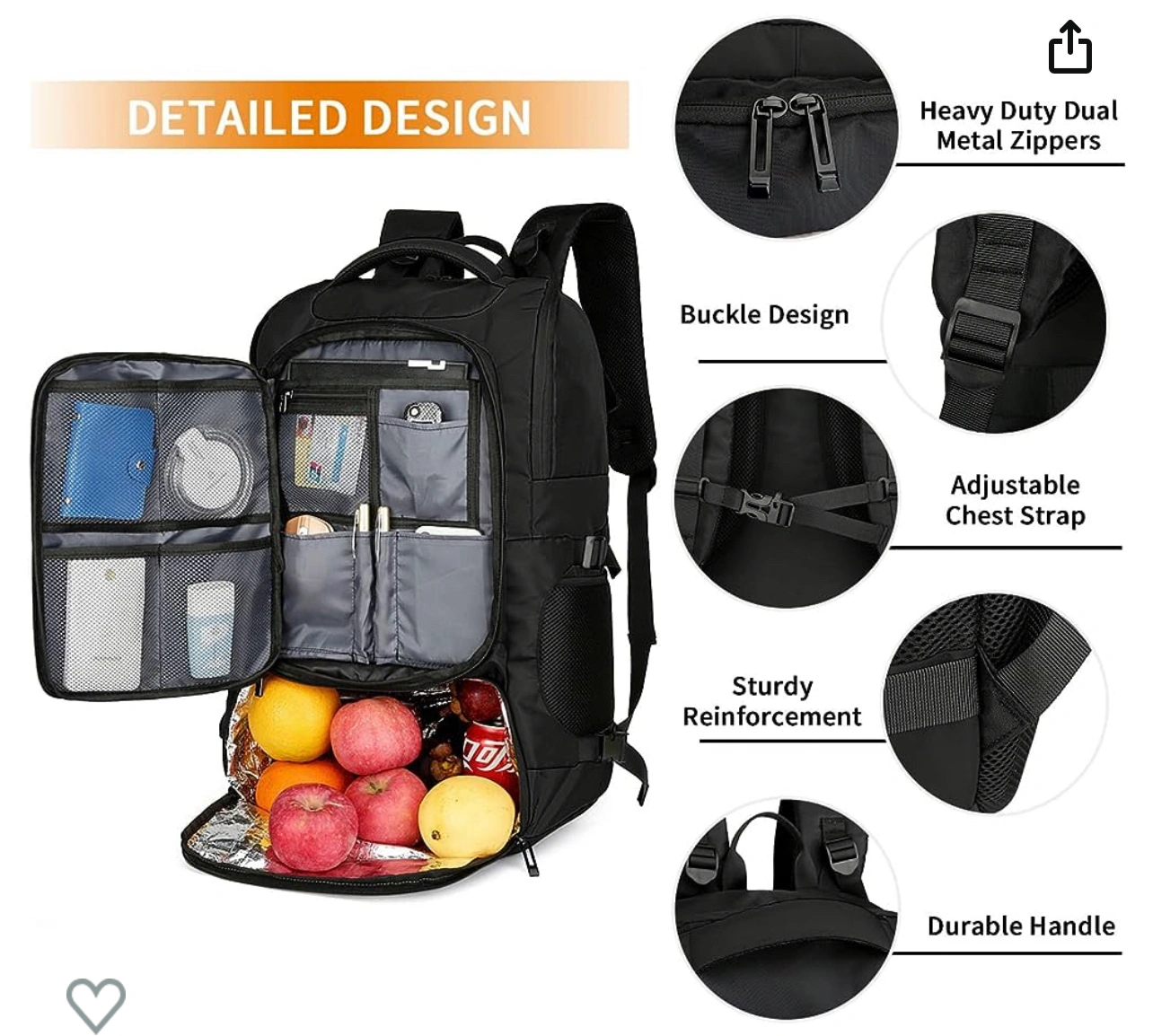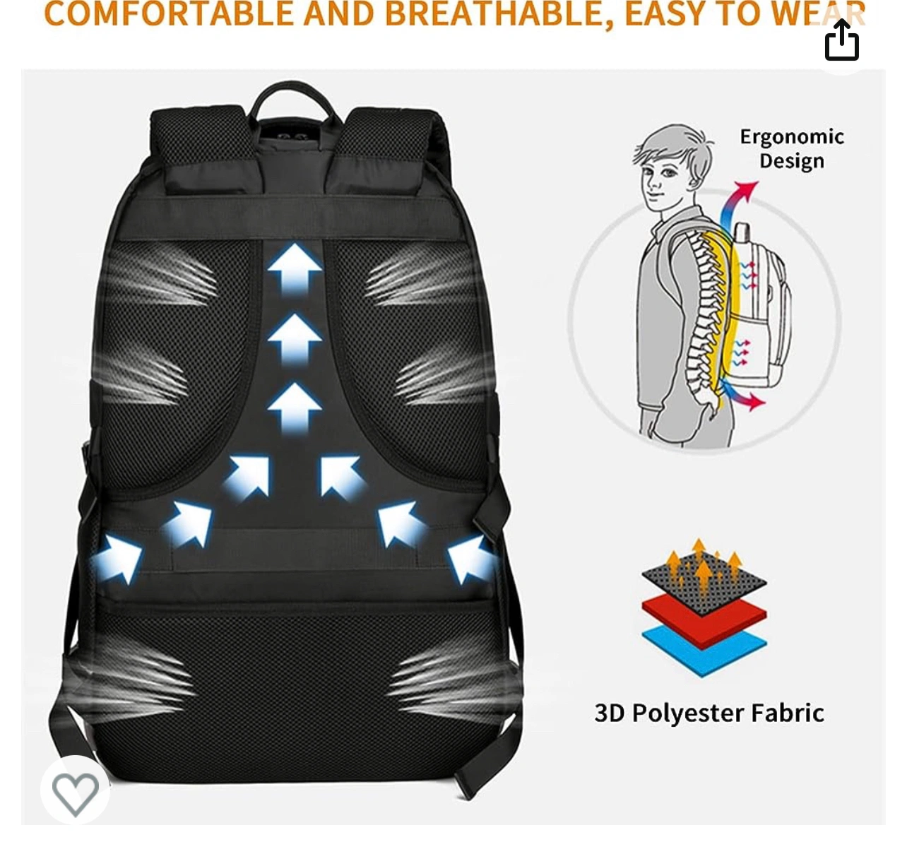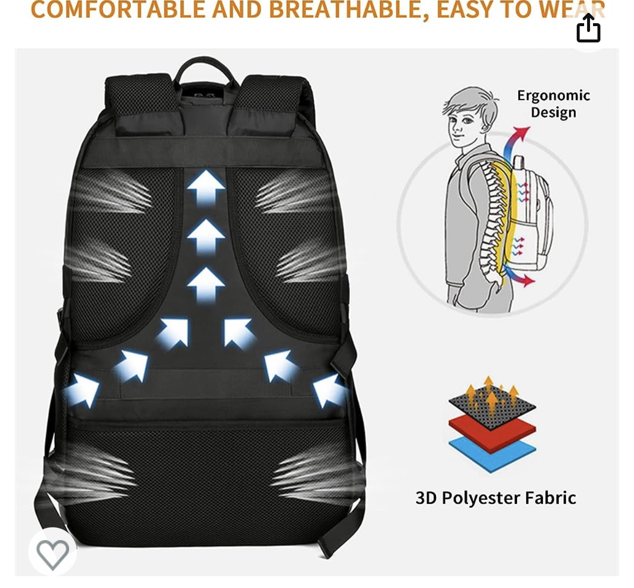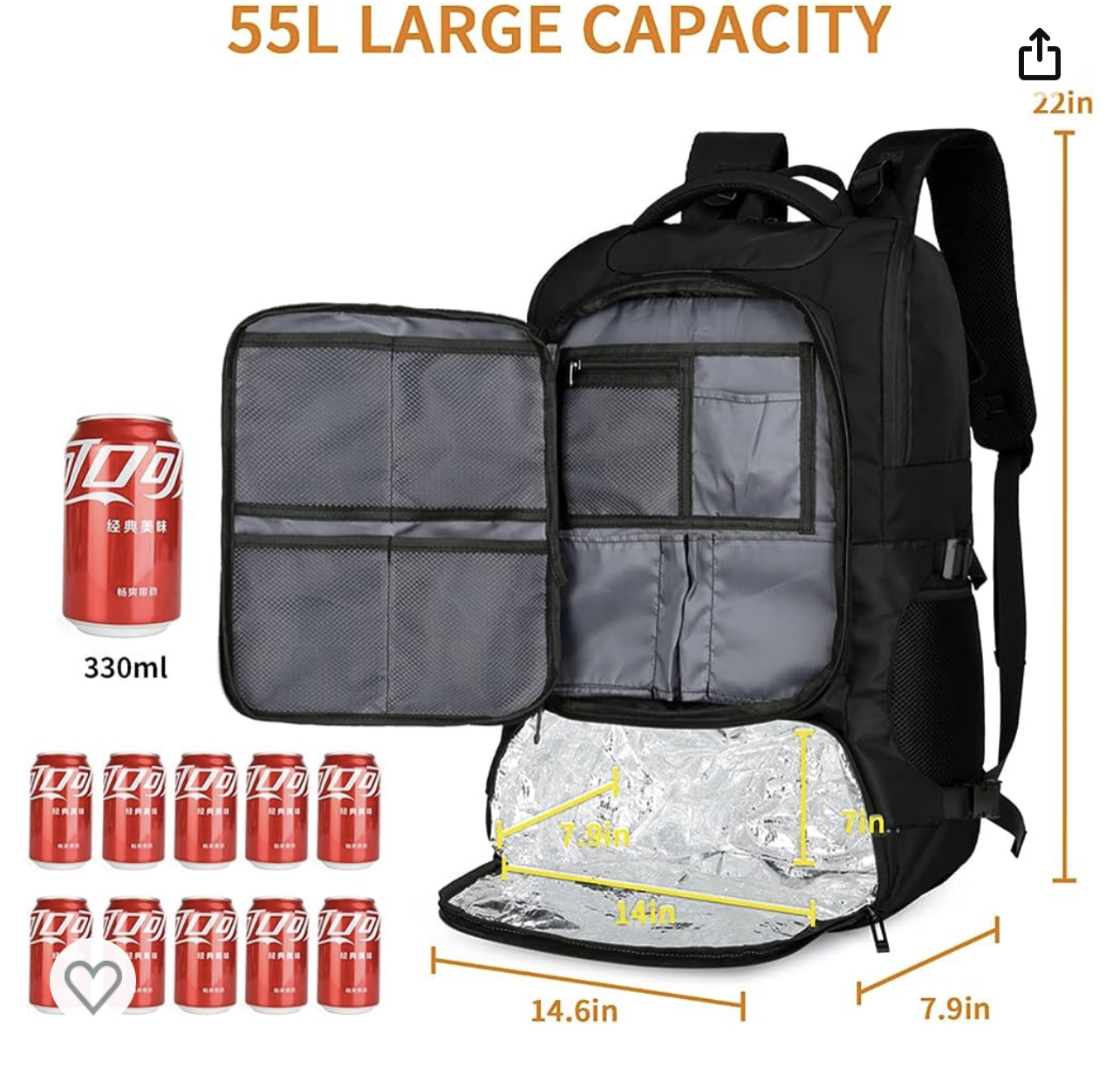 Lunch Backpack, 17.3 Inch Laptop Backpack 55L Travel Laptop Backpack with Insulated Bag for Men Women Waterproof Anti Theft Computer Backpack, Black TONS OF POCKETS: Large backpack for men own 1 separate thicker padded laptop compartment to hold up 17.3 inch laptop. 3 main compartments with double zippers can accommodate 55 liters of things, such as books, lunch, clothes, travel accessories and other daily necessities. Both side water bottle pockets outside for holding water bottles or umbrellas. More than 15 functional pockets ensure you to keep your personal belongings well-organized and get them easily. TRAVEL FRIENDLY DESIGN: Lubardy ergonomic travel laptop backpack with more foam padding inside is comfortable to carry for a long time. A hidden anti-theft pocket and luggage sleeve is designed on the back of travel laptop backpack for your valuables.The back of the large computer bag uses a comfortable and breathable mesh design, Comfortable wide breathable mesh shoulder straps with plentiful sponge pad help relieve the stress from your shoulder. Perfect choice as large bookbag for men women. LARGE SIZE & DURABLE MATERIAL: The 17.3 inch laptop backpack Dimension: 22"H x 14.6"W x 7.9"D. weight: 2.0lb, Capacity: 55L, separate padded laptop compartment hold for 15.6, 17 and up to 17.3inch Laptop/computers. The laptop backpack for men made from high quality polyester fabric Anti Scratch with high density nylon lining for better TEAR and WATER RESISTANT and heavy duty backpack. INSULATED LUNCH BOX COMPARTMENT - The lunch backpack with a insulated cooler compartment,which can keep foods and drinks cool or warm about 4-8 hours, easy to clean and storage when not use,perfect for work, office, picnic, hiking, camping, cycling, other outdoor activities and daily life use. Besides.Dimension of the cooler compartment: 14 x 7.9 x 7 inch, can hold up to 10 cans for 330ml. PERFECT GIFT: Lunch laptop backpacks for picnic, beach, travel, outdoor. Carry on backpack is an idea gift for both men and women.