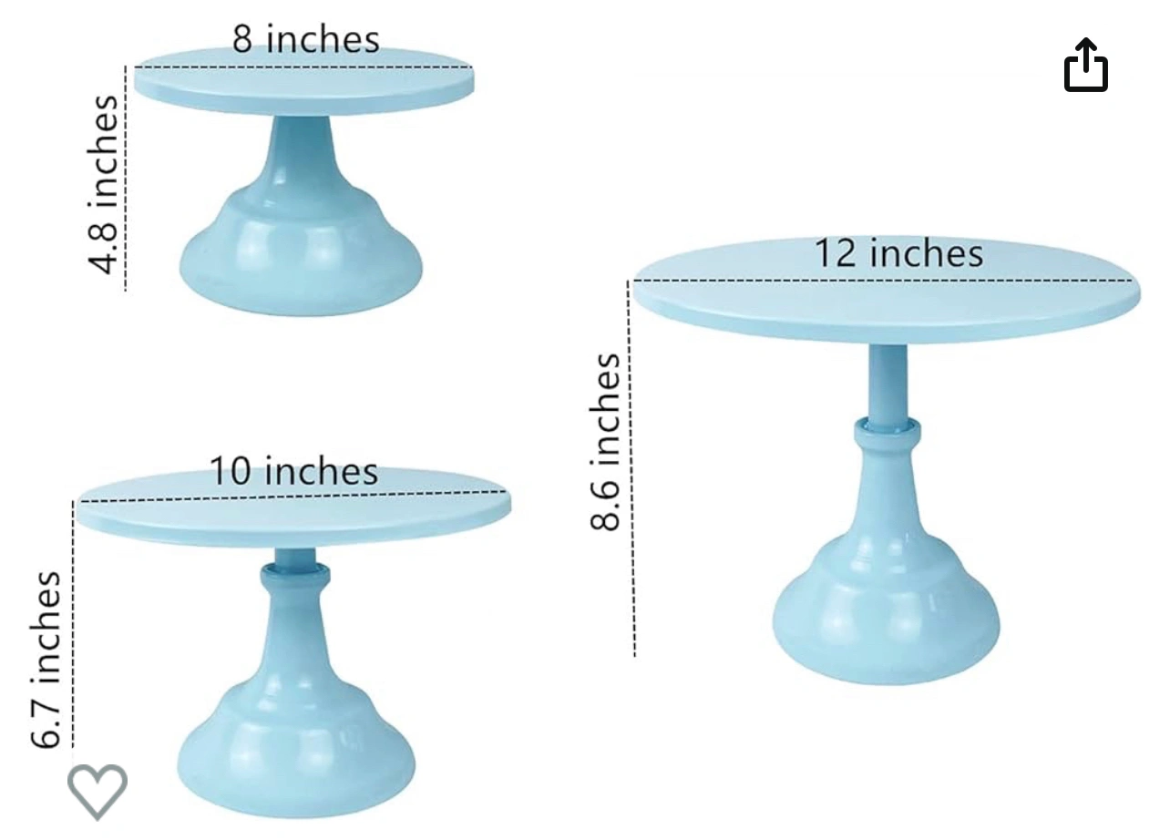 - Dimensions3 sizes cake stands 8inch, 10inch, 12inch