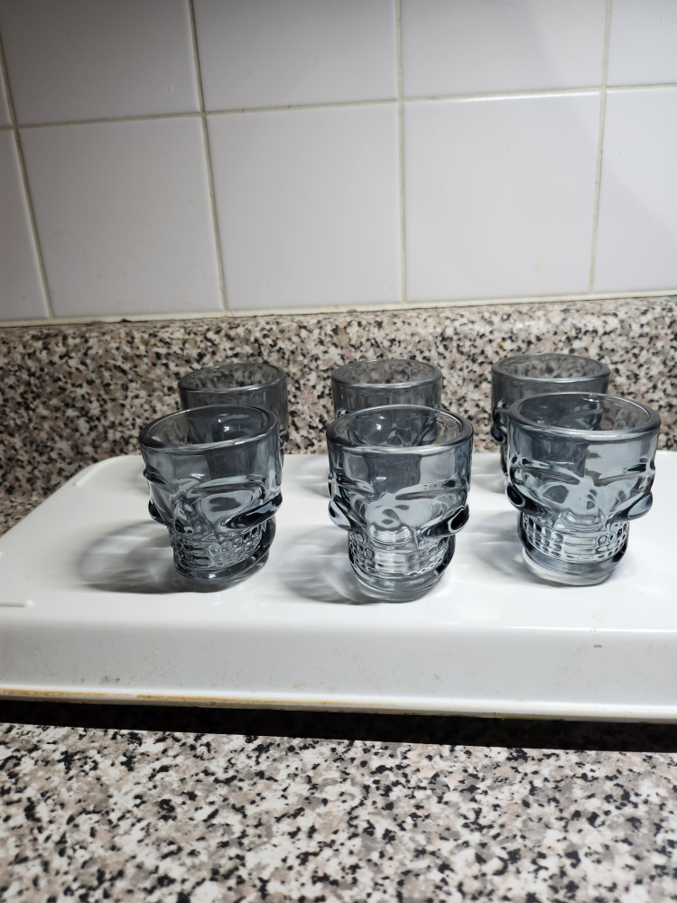 A set of 6 Skull shaped shot glasses for sale in brand new condition. Never used. *CASH AND PICKUP ONLY* Be sure to check out our other listing for more items