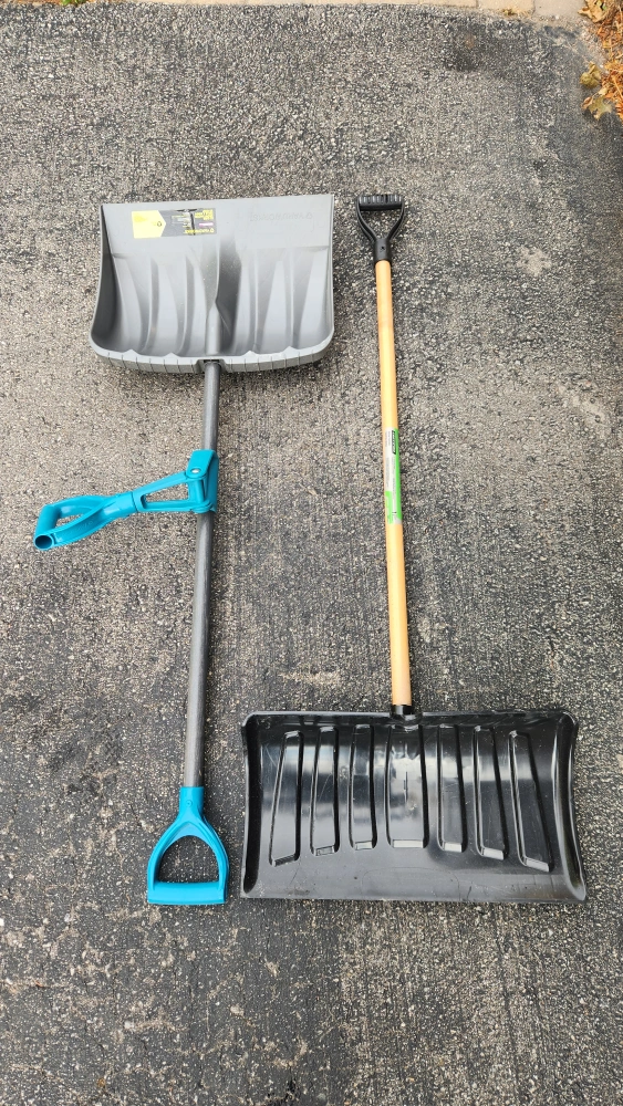 2 shovels available. Both bought last winter and used only a few times. Shovel 1: Yardworks EZ Grip - 19 inch scoop. Link to the shovel below. Regular price: $49.99 ($56.49 after tax). I'm asking for $40. Shovel 2: Certified Heavy Duty Grip with hardwood handle - 21 inch scoop. Link to the shovel below. Regular price: $19.99 ($22.59 after tax). I'm asking for $15 Take both for $50 Yardworks: https://www.canadiantire.ca/en/pdp/yardworks-hd-ez-grip-snow-shovel-scoop-19-in-1590317p.1590317.html?rq=Yardworks+ez+grip#srp Certified: https://www.canadiantire.ca/en/pdp/certified-snow-shovel-with-heavy-duty-grip-and-hardwood-handle-21-in-0596924p.0596924.html?rq=Certified+snow+shovel+21-in#srp