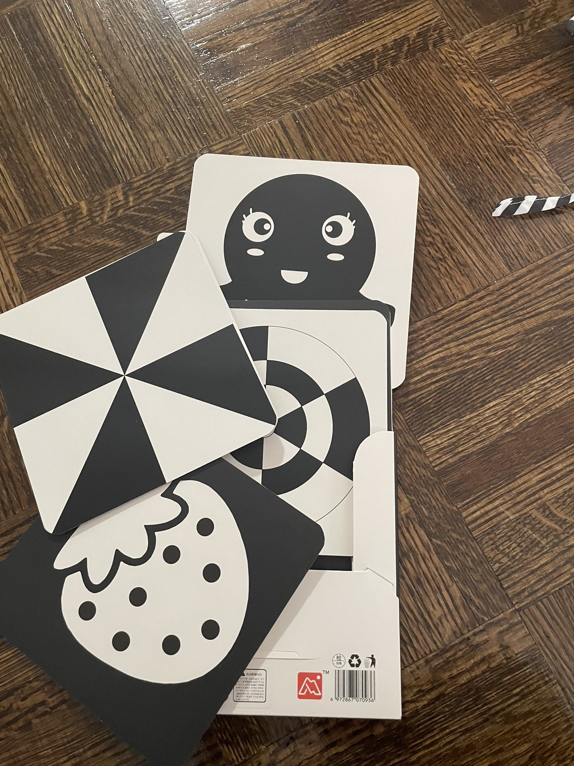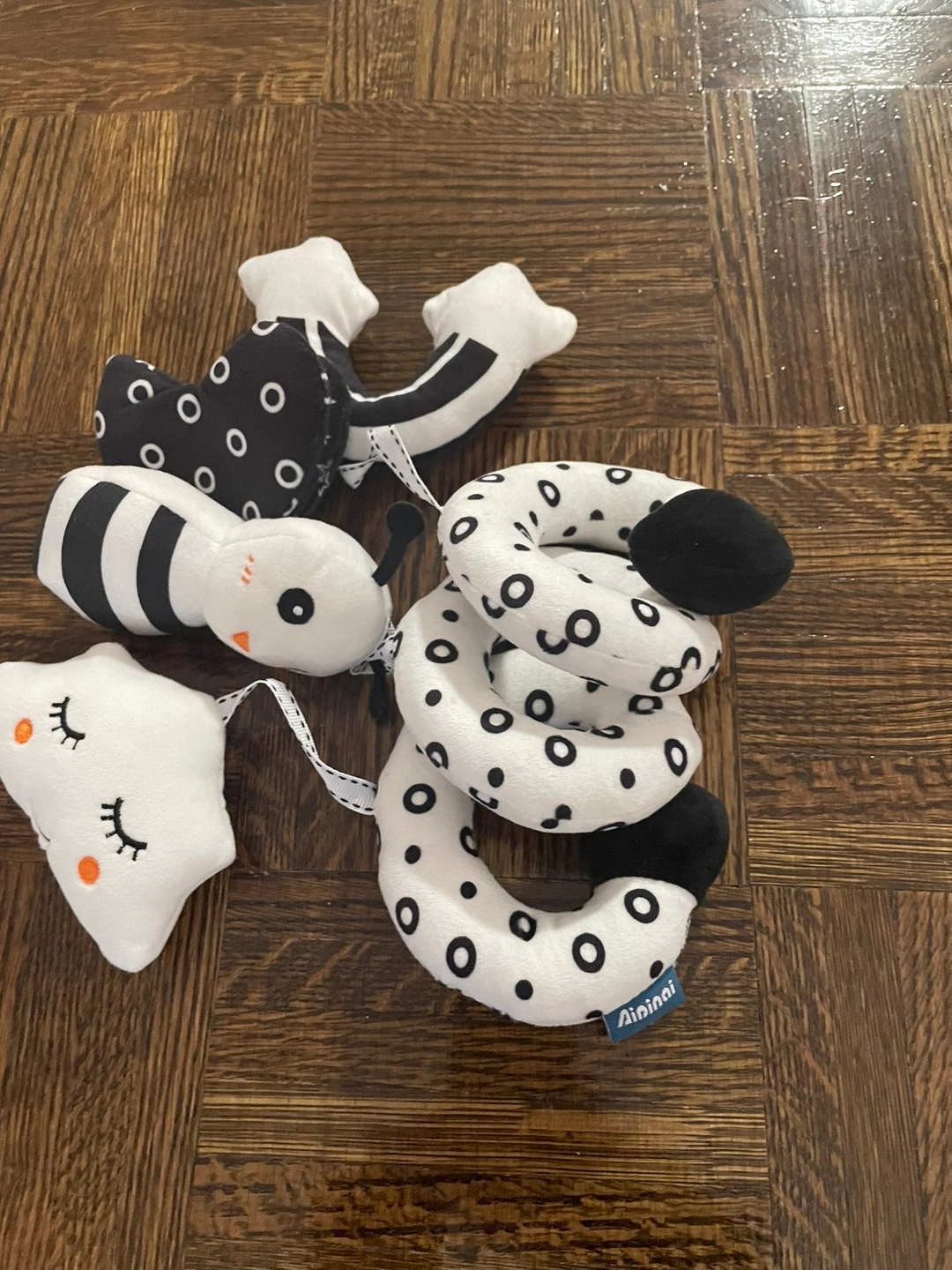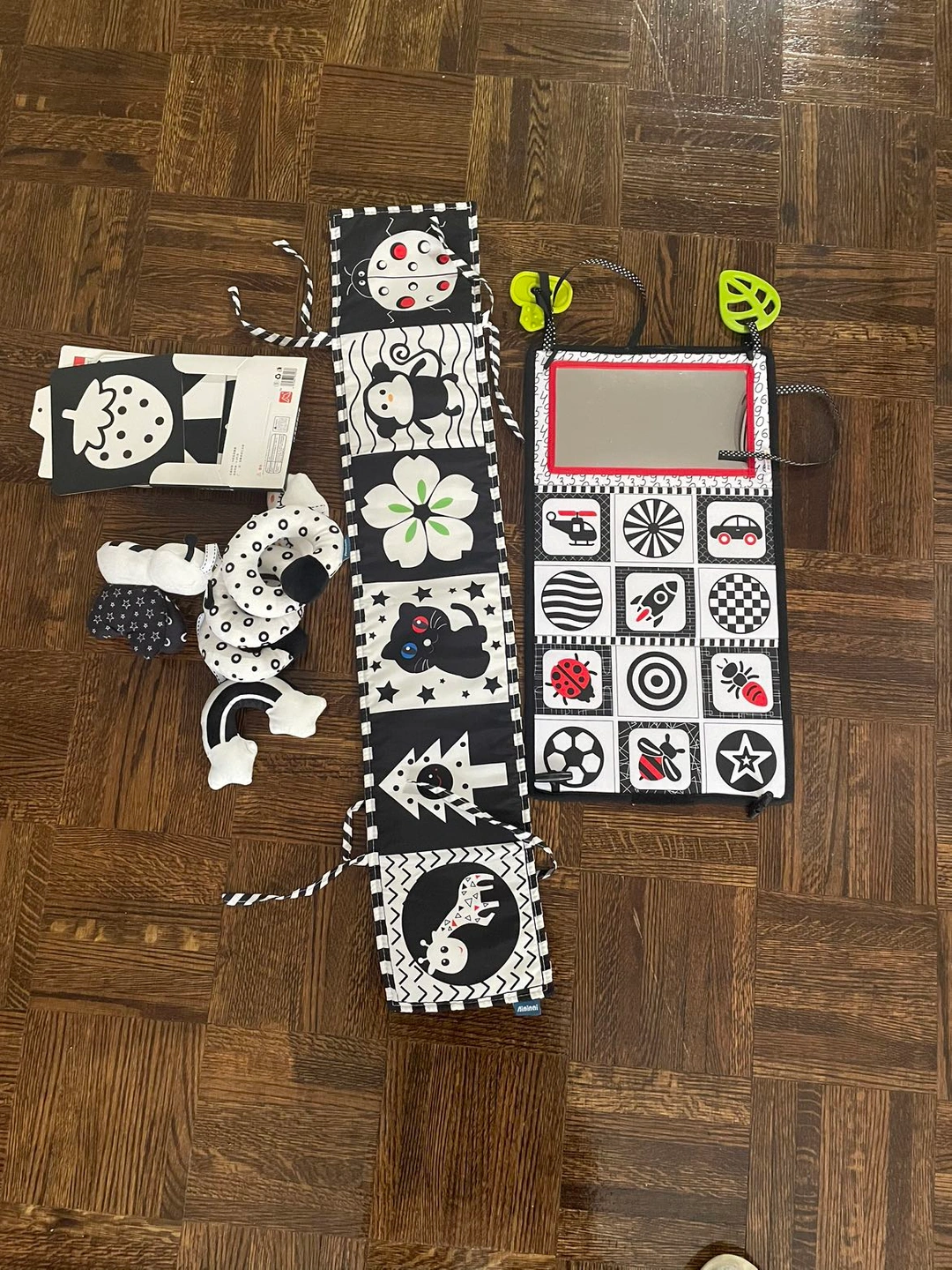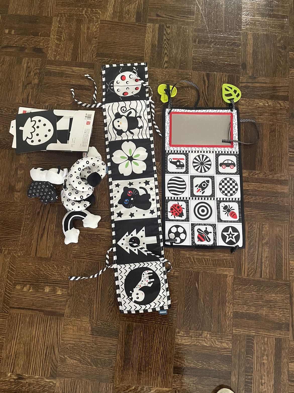 4 black and white stimulation toys for new born up to 3 months. Purchased them for almost $60. Fix price Pick-up only Check out my other listing
