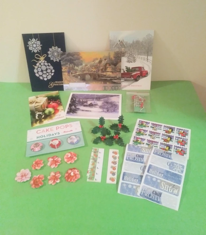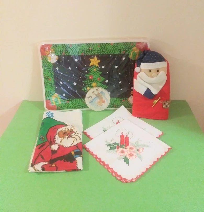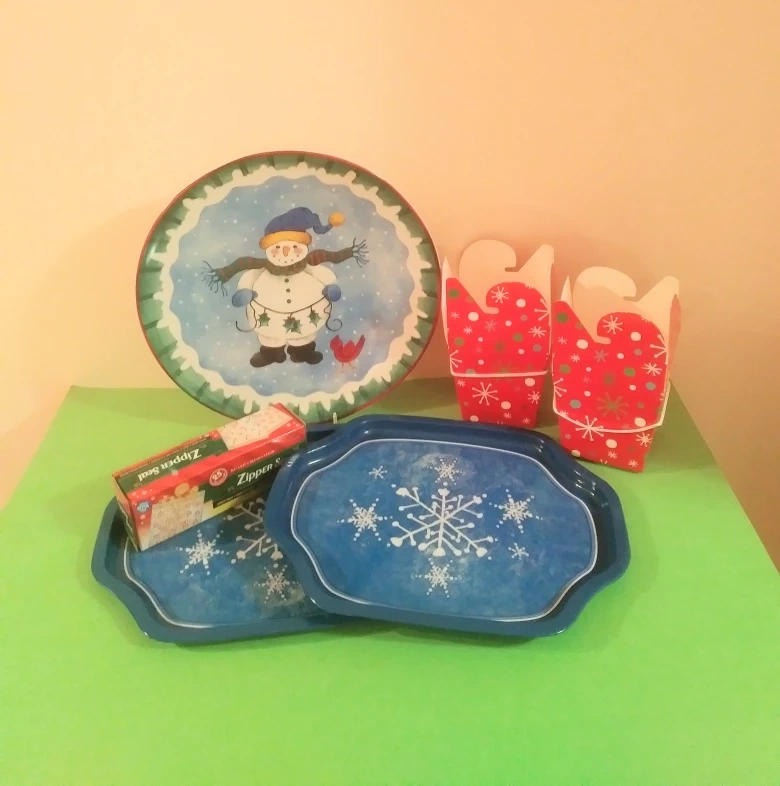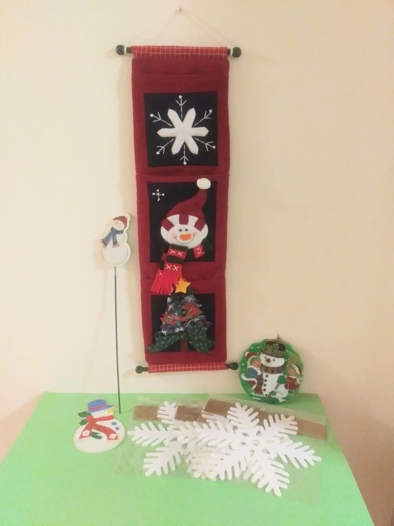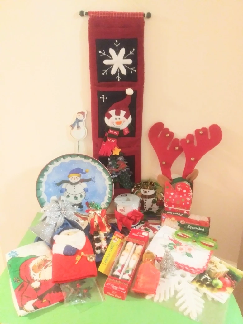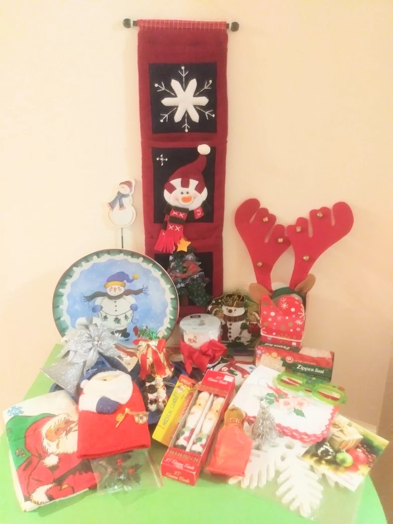 An assortment of around 50 Christmas and festive decorations and tableware for just $1 - $5 each. Or buy the whole lot for $35. For a fraction of retail price you can buy a snowman wall hanging and garden decorations, a round ceramic platter, 6 placemats & 10 coasters, Santa oven mitt & tea towel, 3 large snowflakes, snowman sun catchers, silver and gold coloured bells, snowflake design metal trays, 2 plastic candles, a hanging stocking, treat boxes and ziploc bags, tree ornaments, novelty items, cards, stickers, and more. All items are new or very lightly used. Available for pick up near Celebration Square in MISSISSAUGA Square One. Payment: Cash or e-Transfer.