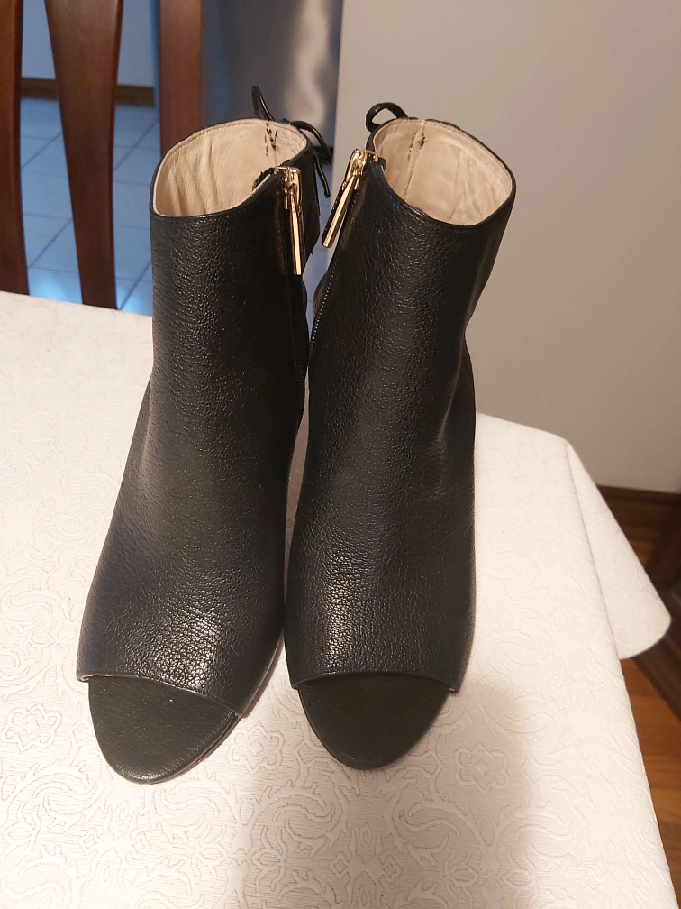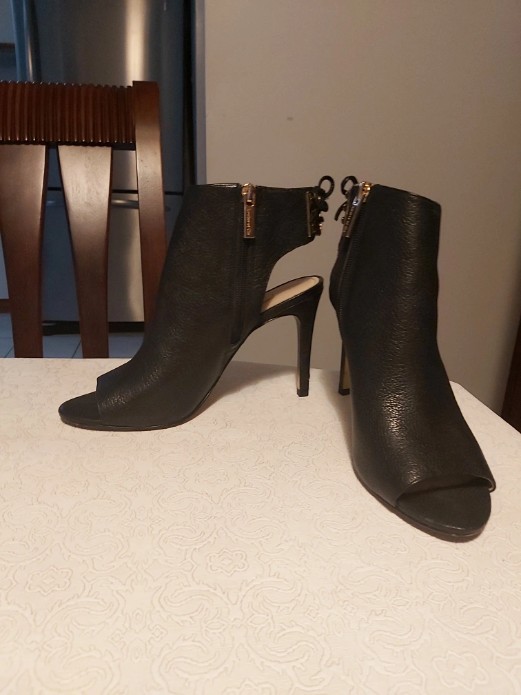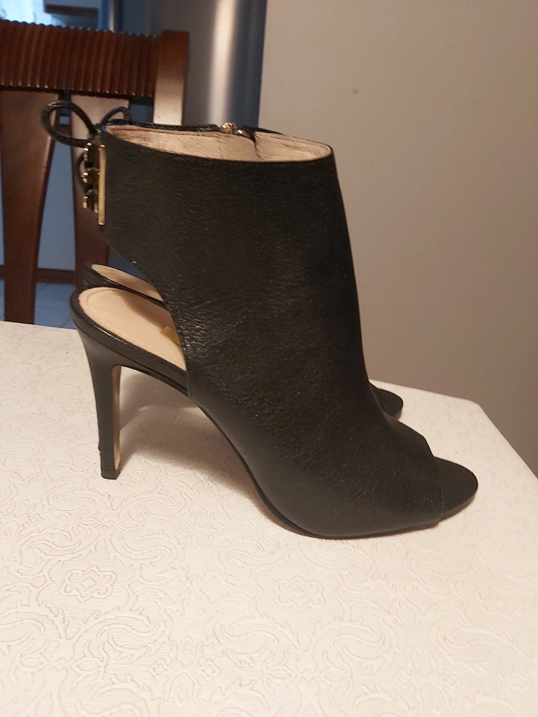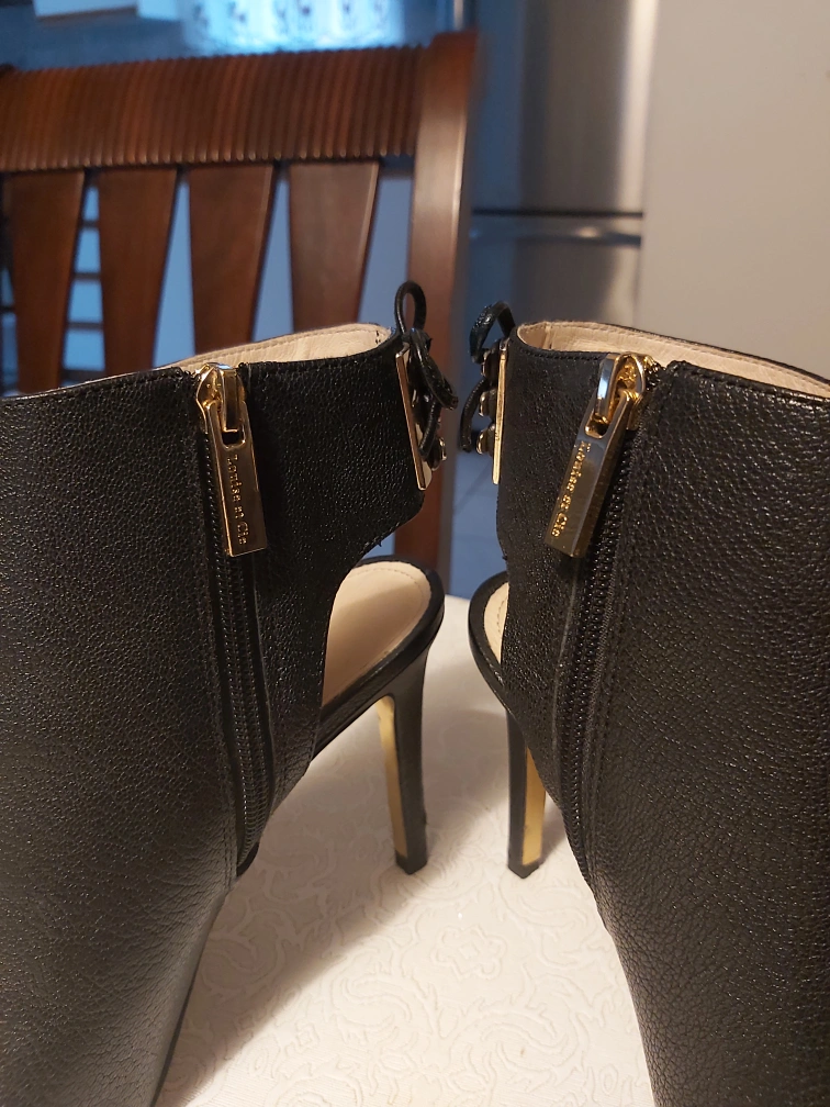 Brand: Louise et Cie Type: Semi covered heels with pretty ankle strap Colour: Black with gold coloured detailing Size: 8 Composition/material: Leather upper/lining, man made sole Additional measurements: Heel is about 9-10 cm, or almost 4 inches; length from the very back heel to very front toe area is about 25 cm