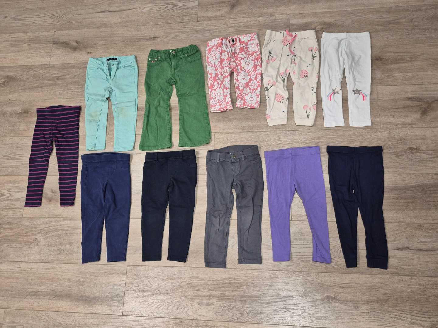 Selling a collection of 11 toddler girl pants in various colours and sizes. There are a few pairs of leggings and some denim-style pants. Great for everyday wear! Check my other listing for more kids items!