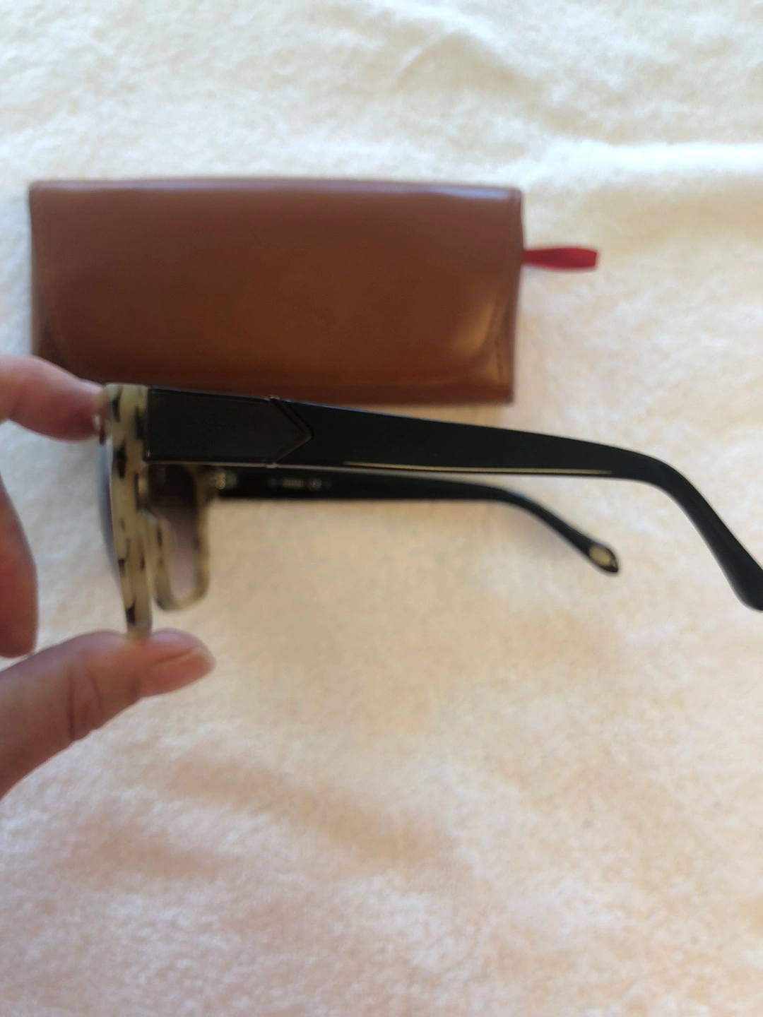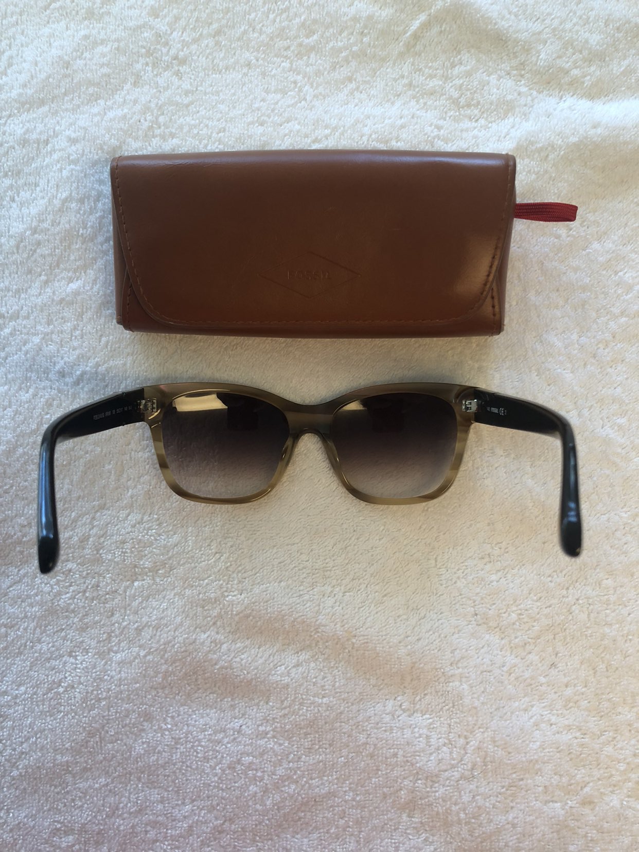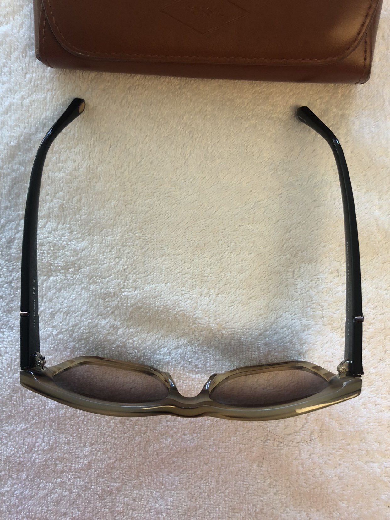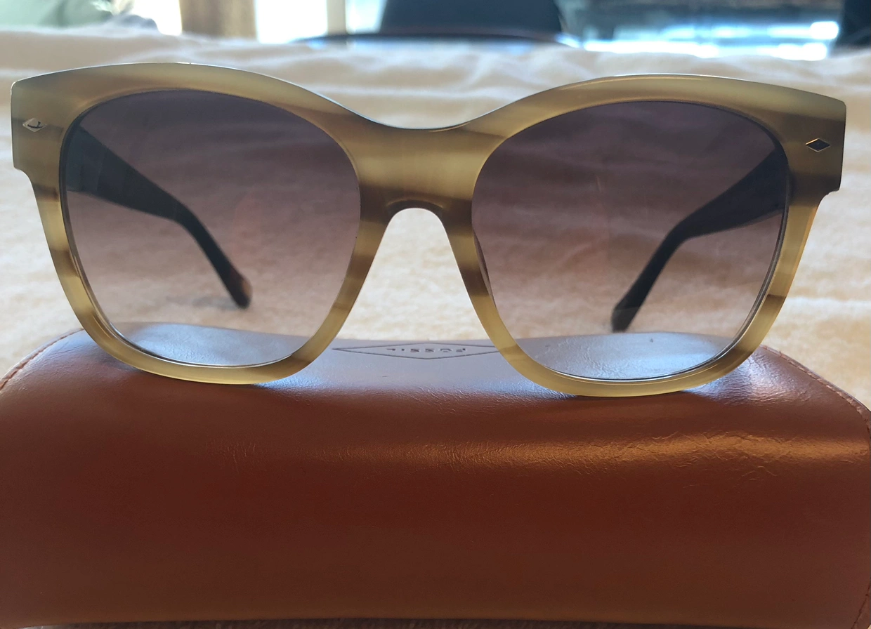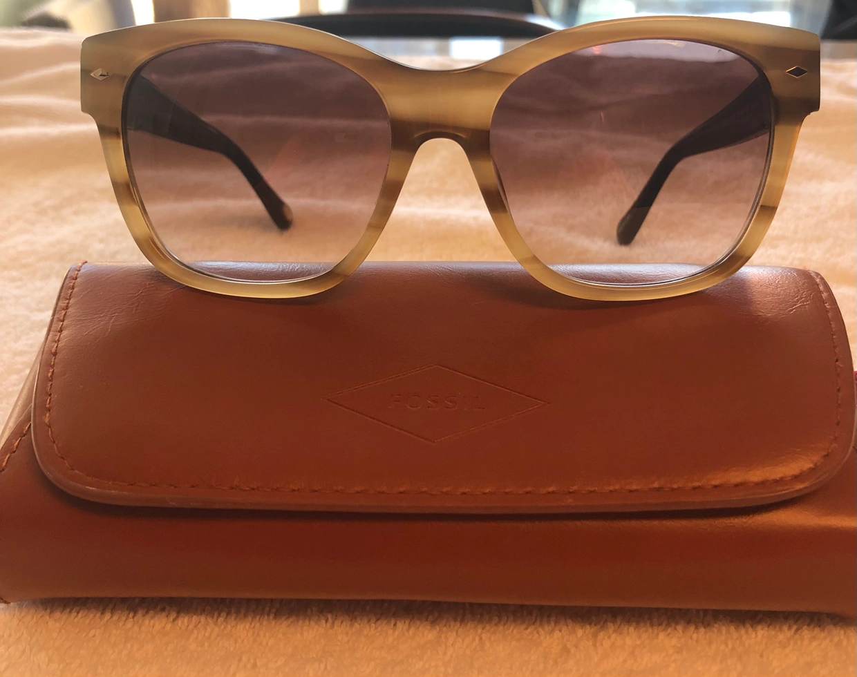 Used a couple of time, tortoise style colour sunglasses. Comes with the Fossil case.