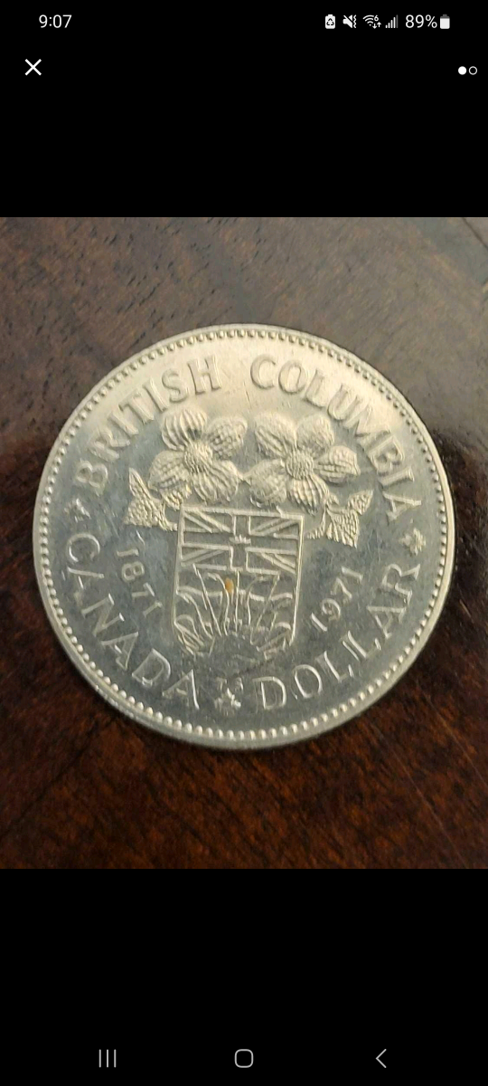 CANADA: 1971 BRITISH COLUMBIA QUEEN ELIZABETH II SILVER 1 DOLLAR COIN
