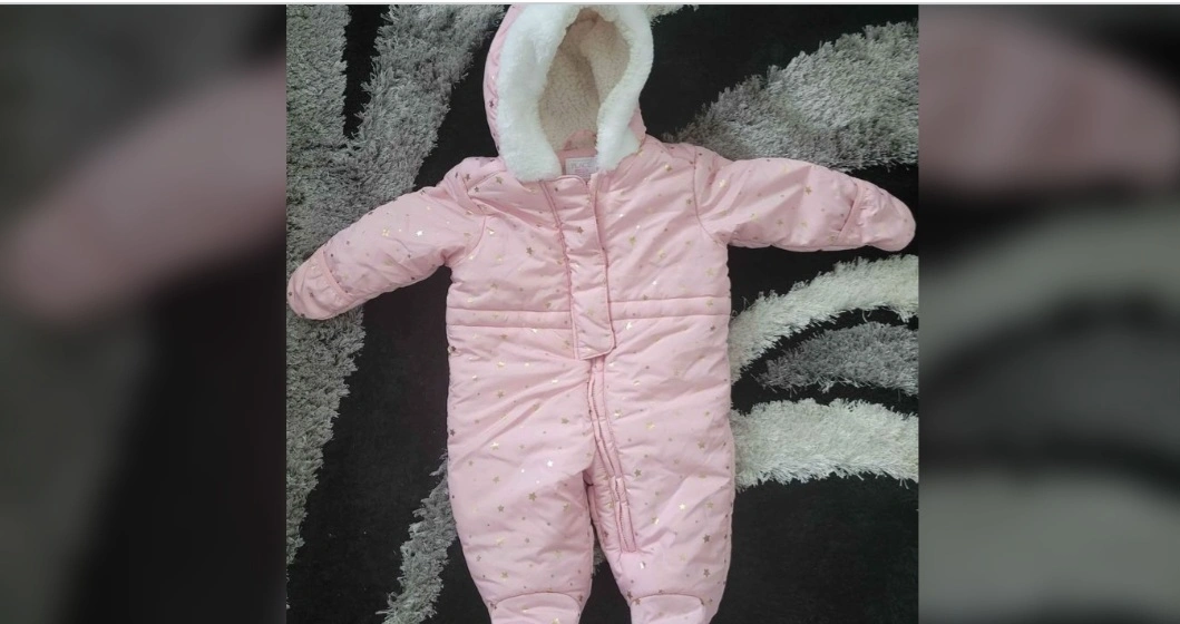 Cute pink baby winter snowsuit only used twice, so looks very new.