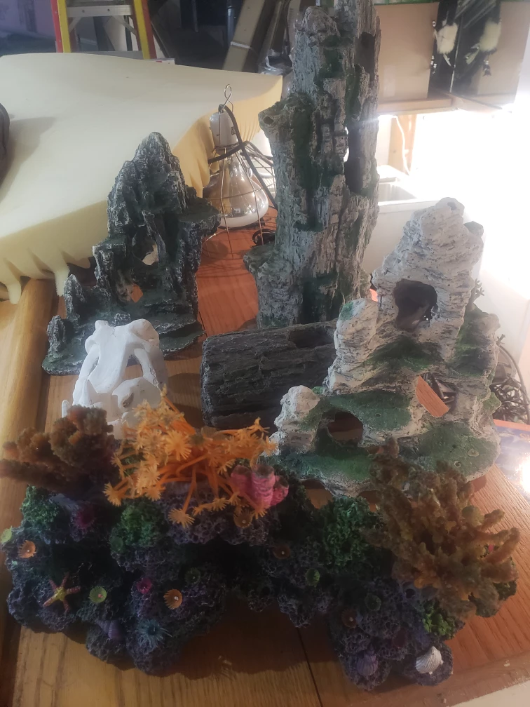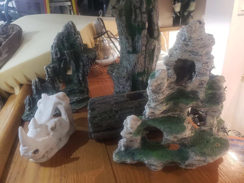 skull $20 ref $40 log $20 light castle $15 (little broken see picture) Dark castle $15 (little broken on back) tall castle $40 Take all for $130 OBO