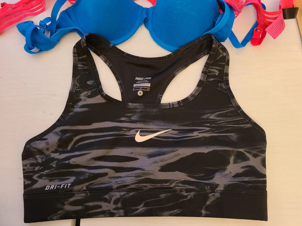 1 Nike Sports Bra (small) 2 La Senza bras w/ underwire (32B) - blue - lace neon pink Only worn a couple times or never worn before. Thoroughly washed. Don't wear them so I want to get rid of them $5 each or take all 3 for $10