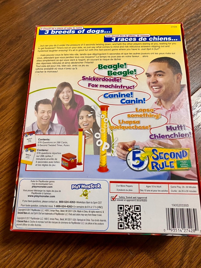 5 Second Rule Game - each card has two levels of questions & the timer makes a fun noise. - pickup near 401 & Kennedy