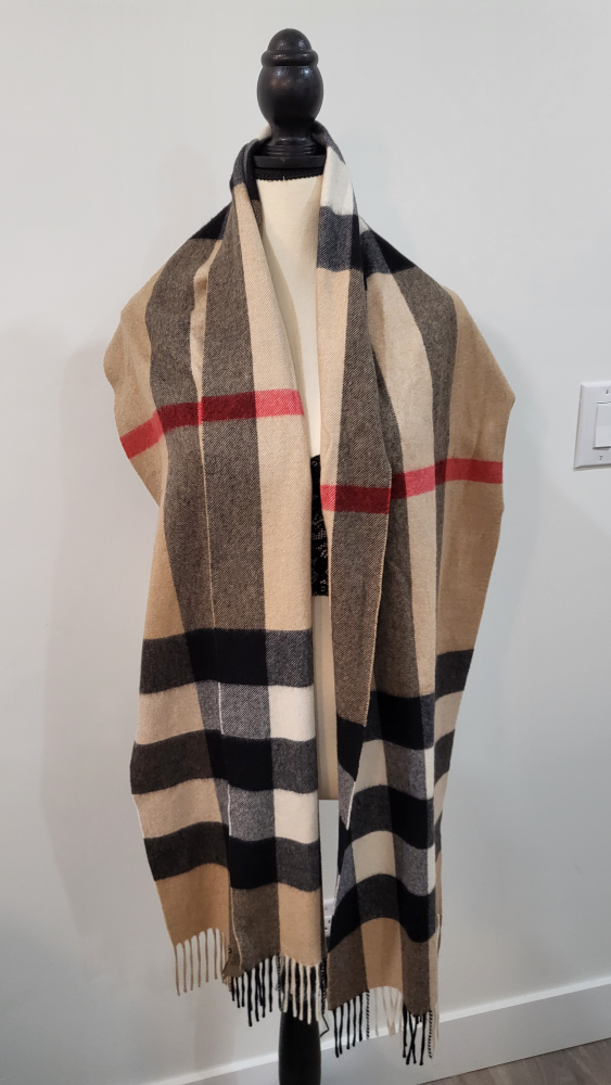 Unisex 100% Authetic 100% Cashmere Yes it come with the box. please let me know if you like me to roll it up and put it in the box when you purchase it or you would like to save me the trouble of putting it in ghe box and bring thr scarf out to show you the condition and you can put it in the box when you get home. got it 2 years ago only worn it less than 10 times I realized that i personally find wool and cashmere very irritating on my skin. I will stick to cotton. valued at 950 tax in. selling for 700 FIRM price. I'm sorry I'm not negotiating any lower you can always resell it for thr same price you bought it for $700 it's and win win.